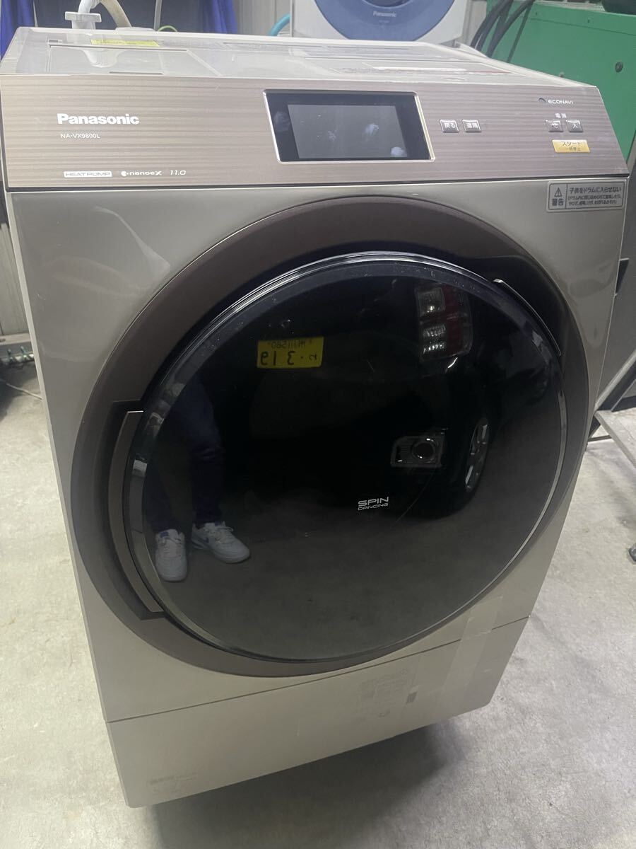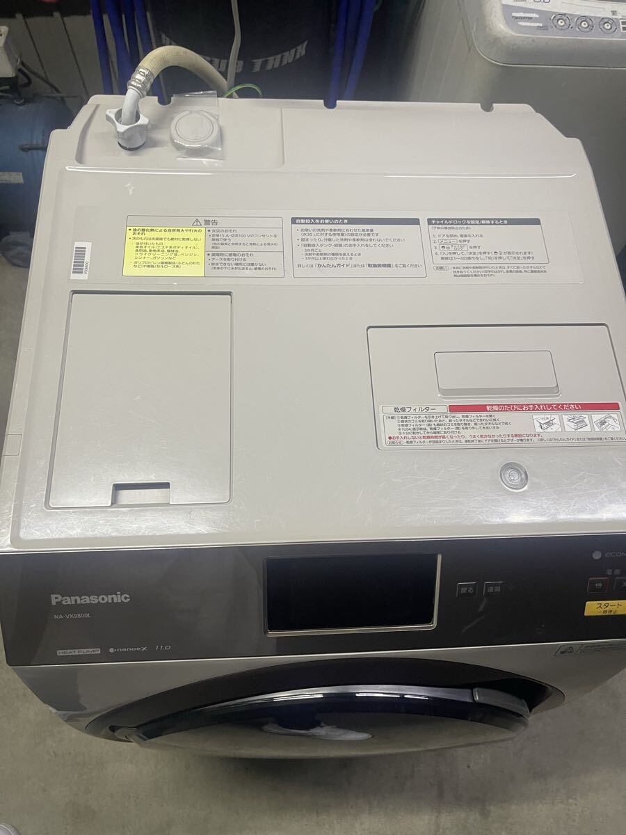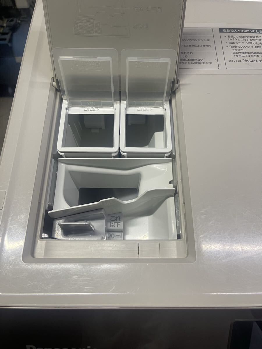 ヒートポンプ技術とnanoeX搭載のシルバーのドラム式洗濯機。