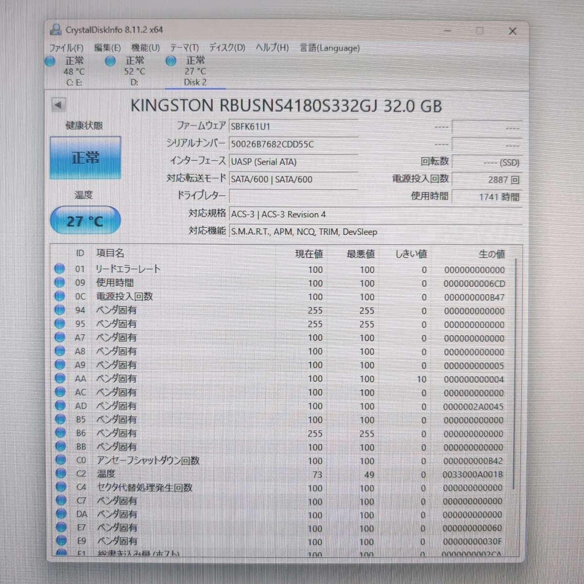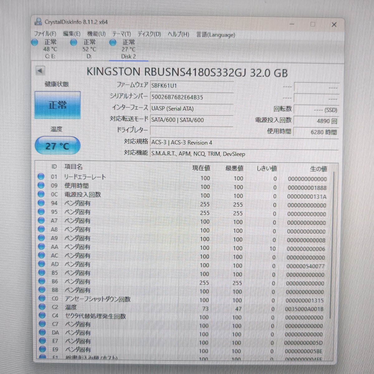 | 注意事項 | ■配送業者のご指定は契約上、承ることが出来ません。 ■土日はお休みを頂いており、週明けでの対応となります。 ■まとめて取引にご承諾頂けない場合、単品での発送となりますのでご注意ください。 ■保証類は設けておりません。返品不可のお品物です。 ■CrystalDiskInfoはあくまで目安であり、快適な動作を保証するソフトではございません。 ■このページに記載がない不良は保証外となります。 ■商品の使用方法などの電話・サポートは一切致しかねます。 ■梱包、清掃は簡易となります。 ■あくまでも中古品ですのでご了承いただけますようお願い申し上げます。 ■梱包済み商品となりますので、同梱を承ることができません。 以上、よくお読みになって質問・入札願います |