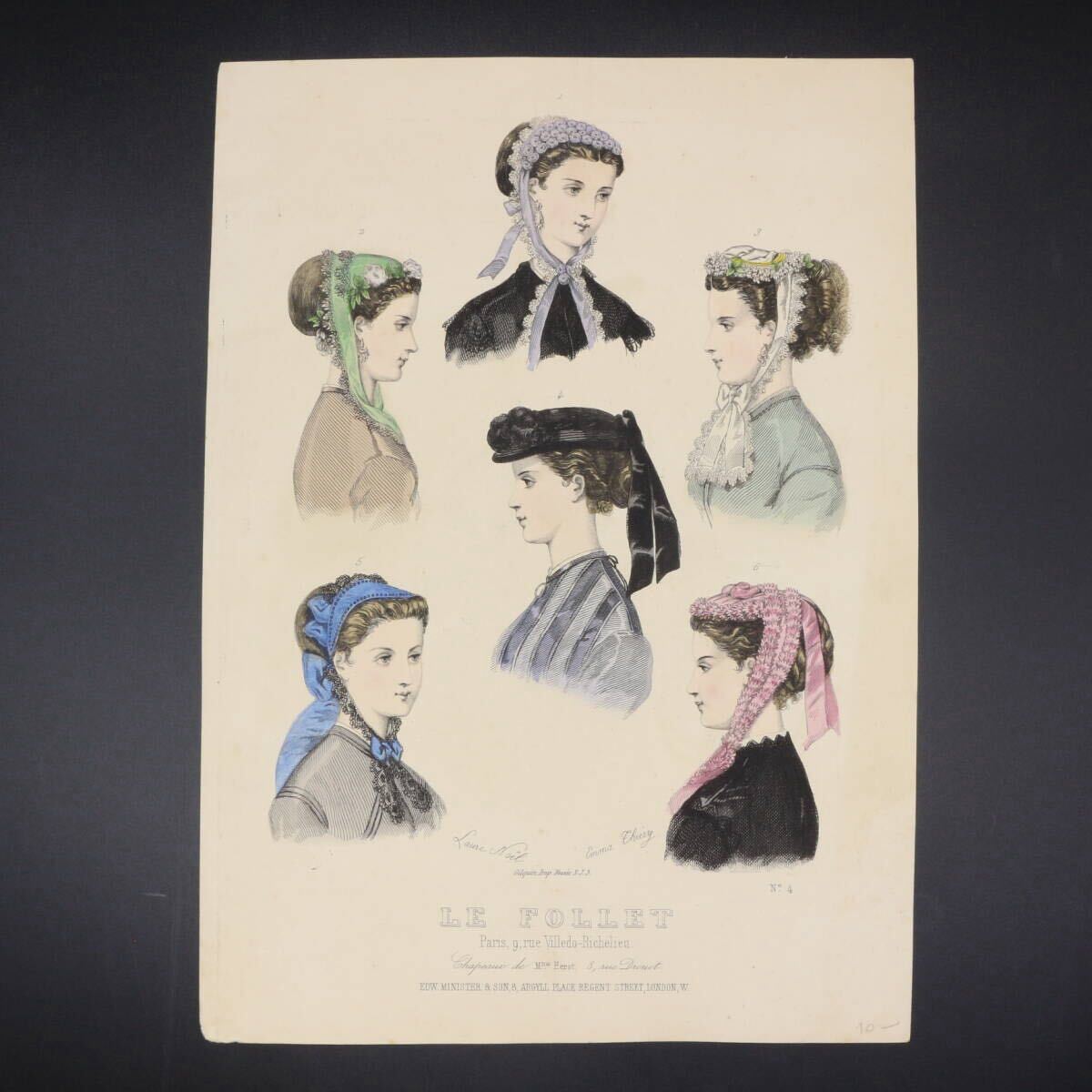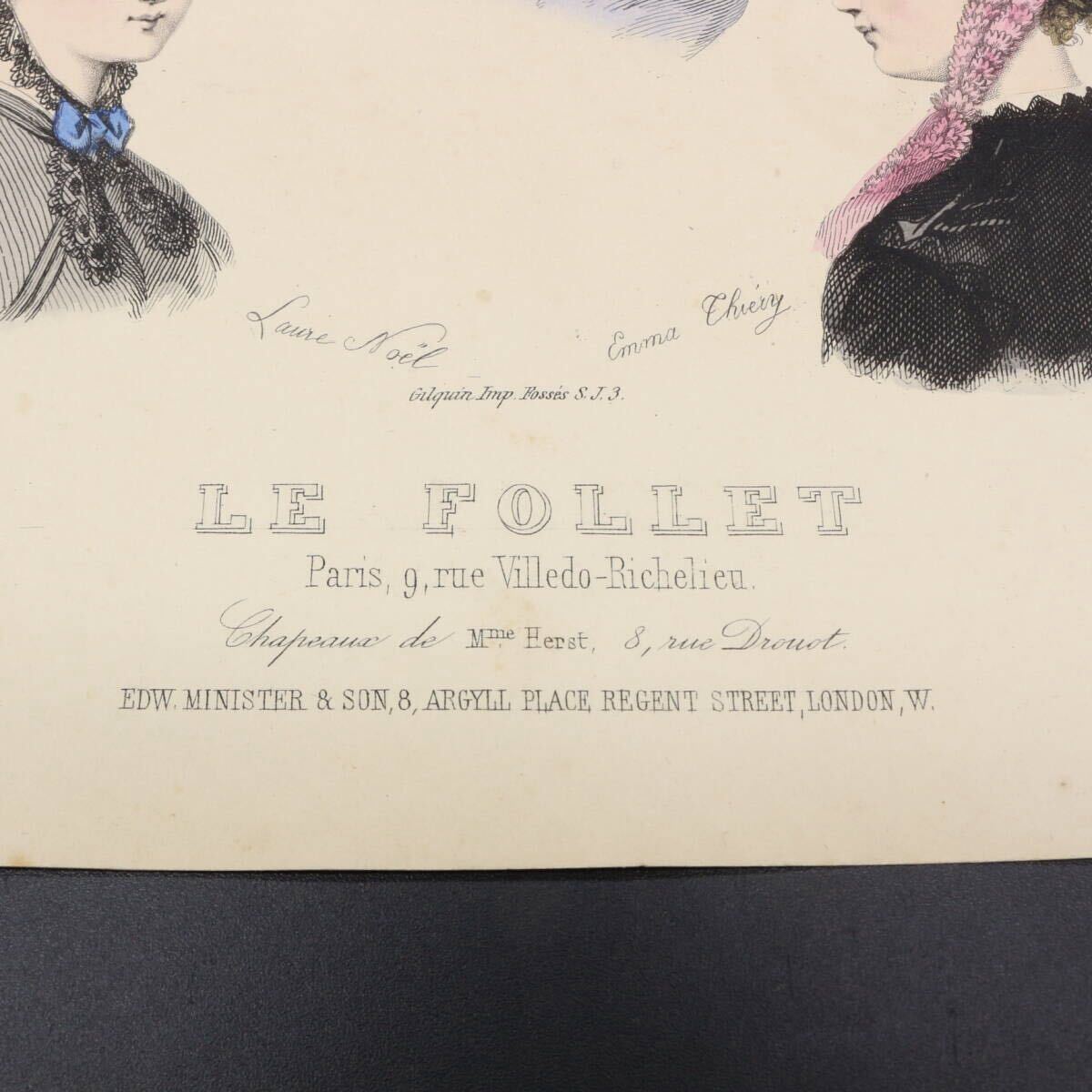 フランスの19世紀を代表するファッション誌 「Le Follet(ル・フォレ)」 は、華やかなパリのモードを紹介する女性向け雑誌で、精緻な銅版画に美しい手彩色が施されたプレートが毎号掲載されていました。