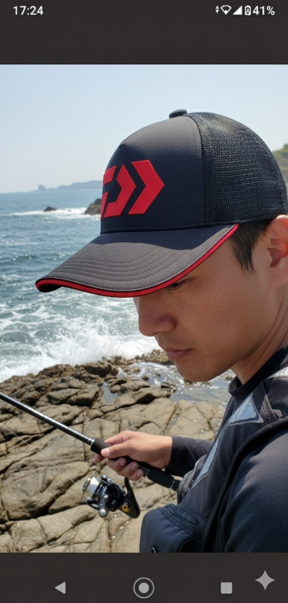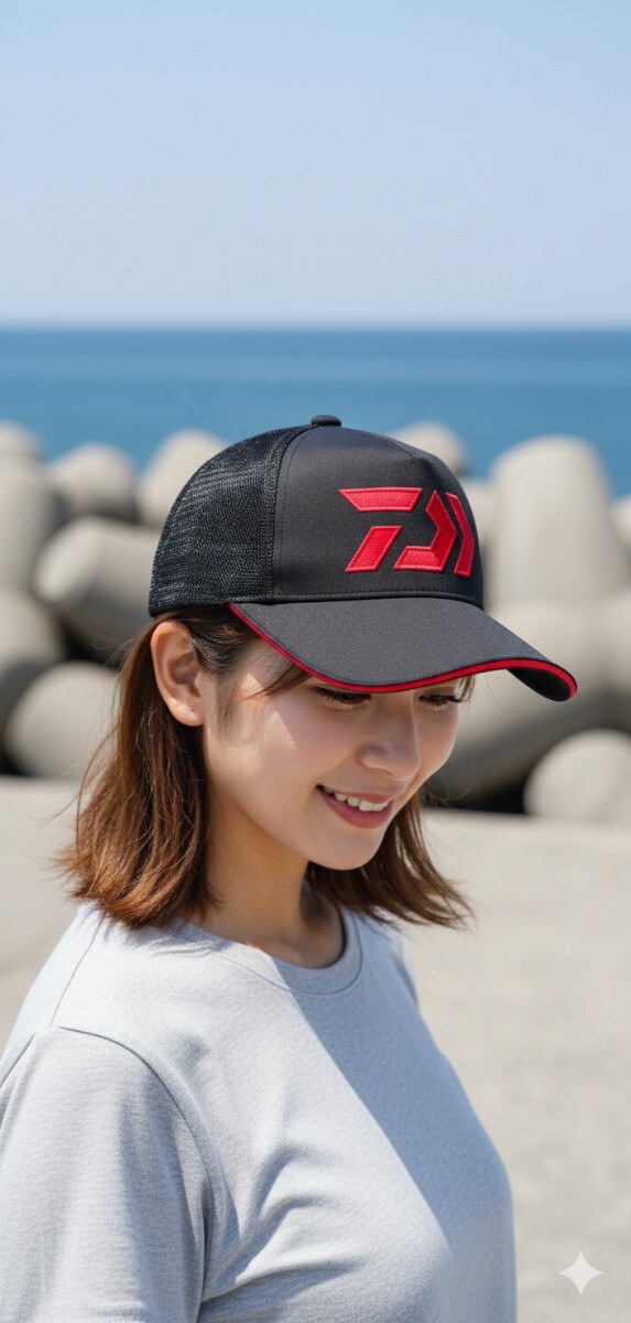 【送料無料】ダイワ 撥水 高級キャップ  FeelAlive サイズL 頭囲57〜60㌢ アジャスター フリー調整 DC-3225 ハーフメッシュ 赤ロゴ 帽子