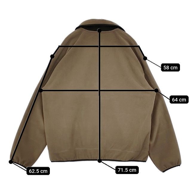 | 実寸サイズ | 肩幅:約58cm 着丈:約71.5cm 身幅:約64cm 袖丈:約62.5cm ※採寸画像がある商品はハンガーに吊るした状態での計測のため、平置きでの採寸とは差が生じる場合がございます。平置きでの実寸サイズをご希望の場合は、ご購入前に必ずご質問ください。 ※記載以外のサイズが合わないことを理由とした返品はできませんので、 記載部分以外で実寸サイズの気になる箇所があれば必ず購入前にご質問ください。 |