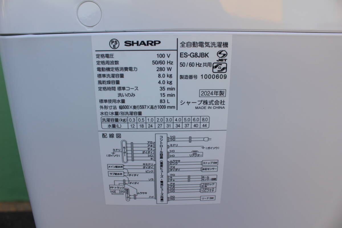 SHARP シャープ ES-G8JBK 全自動洗濯機 ゴールド系 [洗濯8.0kg /乾燥機能無 /上開き] 2024年製 未使用に近い デモ展示品