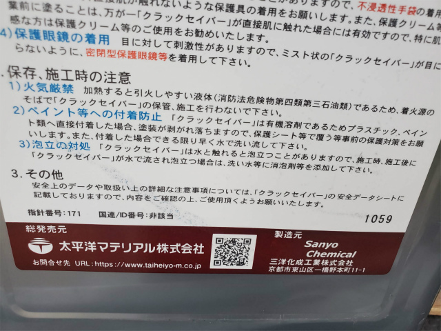 [1928-1]未使用 クラックセイバー 塗布型高性能収縮低減剤 ひび割れ低減材 太平洋マテリアル コンクリート ひび割れ 補修 土木 建築