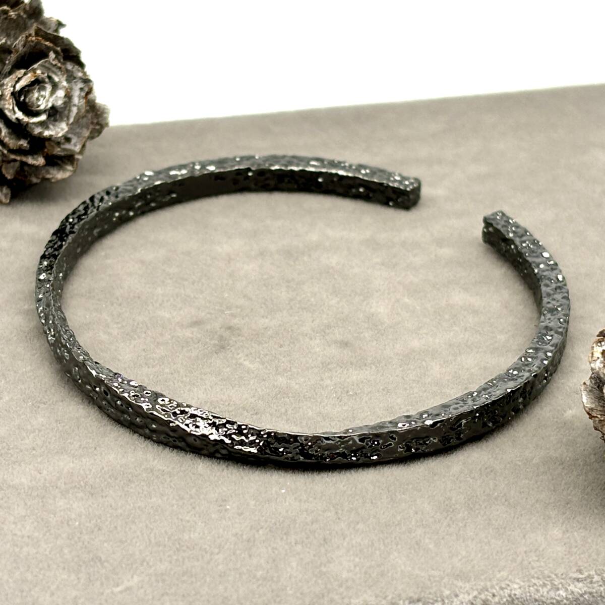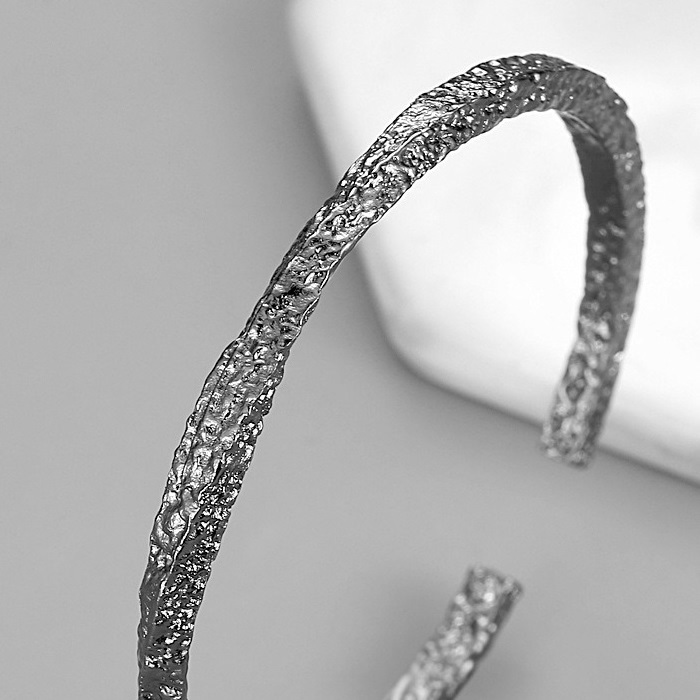 荒々しい無骨な雰囲気漂う印象のシルバーバングル。