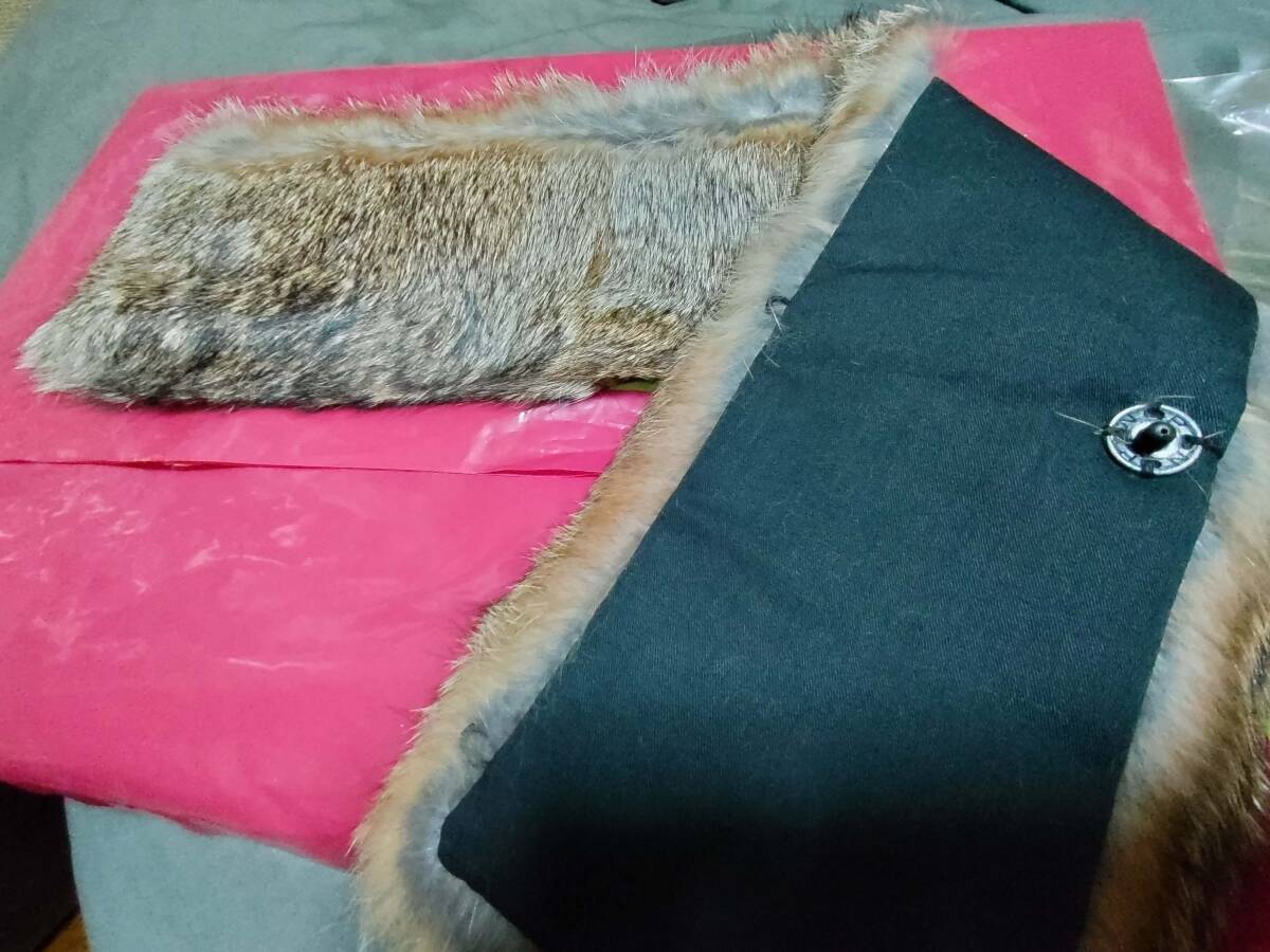 別売りのナチュラルラビットファー(画像四枚目)をお付けしますので、ファーを付け替えての着用が可能です(画像五枚目)。