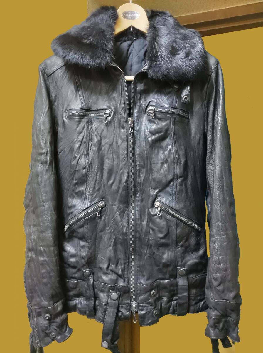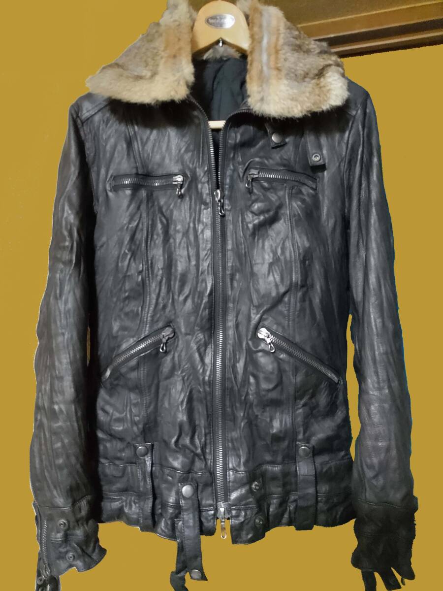 SHELLAC ラビットファー ブルゾン ライダース ジャケット レザー
