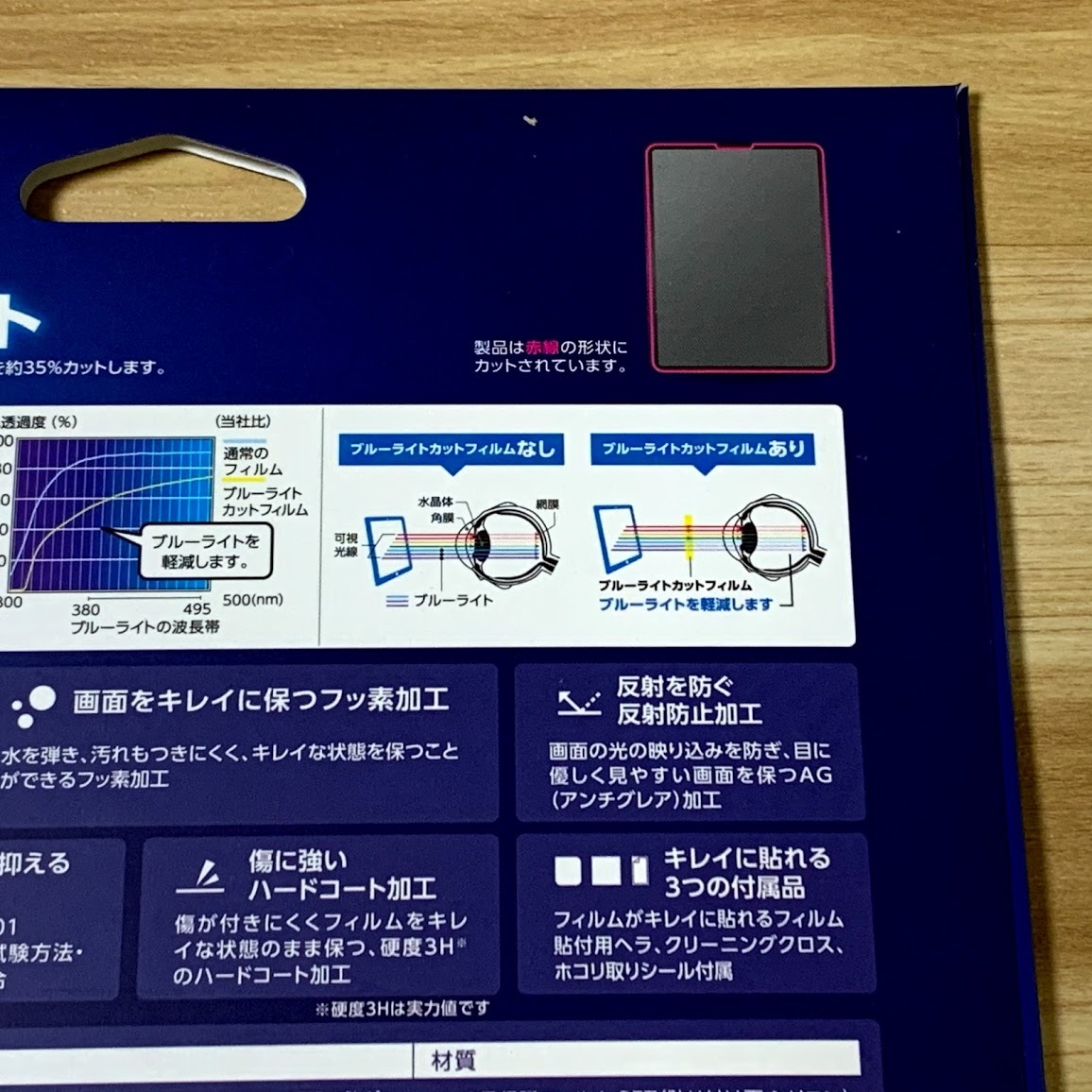■液晶ディスプレイが発する光の中の青い部分「ブルーライト」を約35%カットする液晶保護フィルムです。