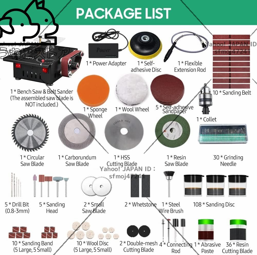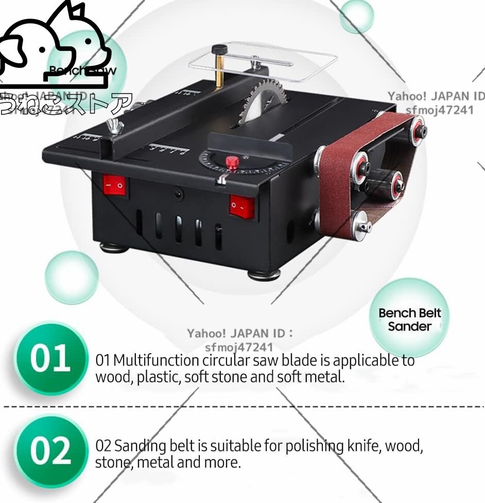 ベンチソーとベルトサンダーの2in1機能。タイプ 1 には、丸鋸刃と 10 本の研磨ベルトが装備されています。タイプ2には、のこぎり、切断、研磨、研削、彫刻、および穴あけのための豪華なアクセサリーが装備されています.