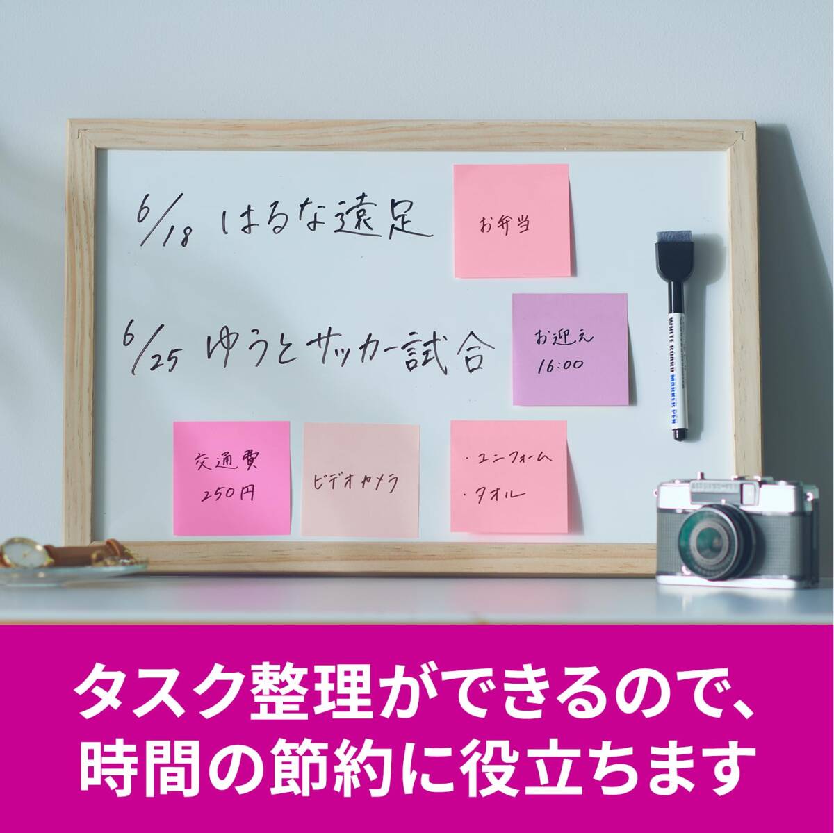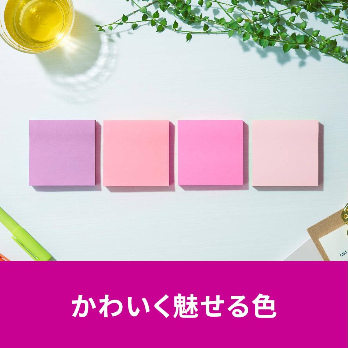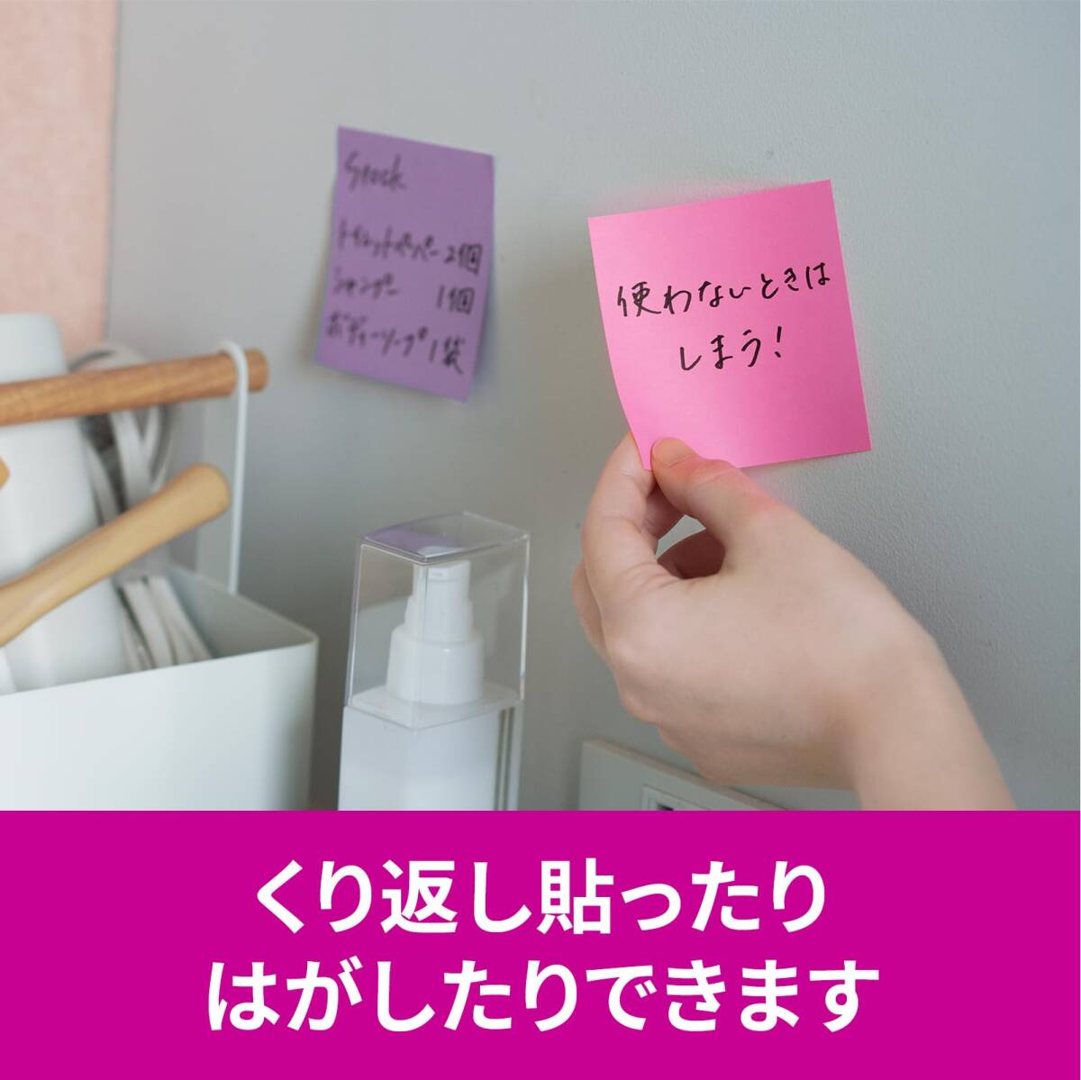 "Color your story" ポストイットの豊富なカラーバリエーションが、毎日を鮮やかに彩り、仕事や毎日の生活を楽しく、効率的に。約2倍の粘着力*で垂直面にもしっかり貼れ、くり返し貼ったりはがしたりできます。*ポストイット 通常粘着製品比カラフルな4色のセットなので、色で識別したり、書いた部分を目立たせたりすることができる。カラー:アイリスインフュージョン・ポジティブリィピンク・トロピカルピンク・ピンクサイズ:75×75mm 枚数:45枚×4パッド