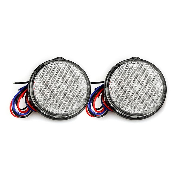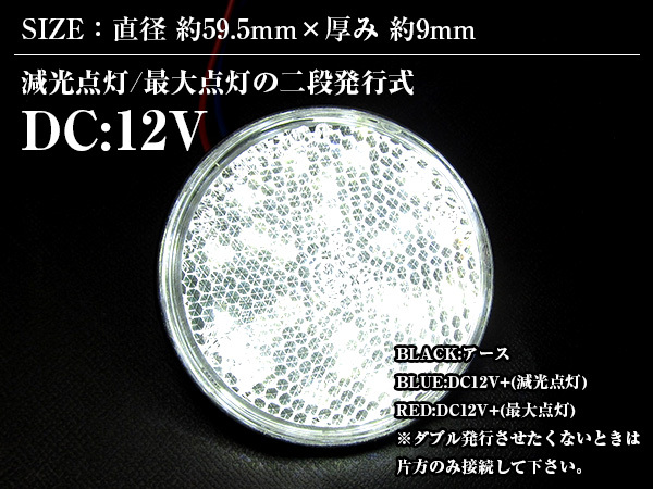 【送料220円】ダブル発光 光る LEDリフレクター 反射板 丸形 12V ホワイト 白 1セット 2個 サイドマーカー トラック トレーラー 旧車 汎用