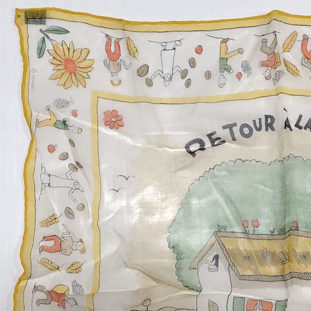 状態ですがシワがございますが目立つダメージなく綺麗なミニスカーフになるかと思います。