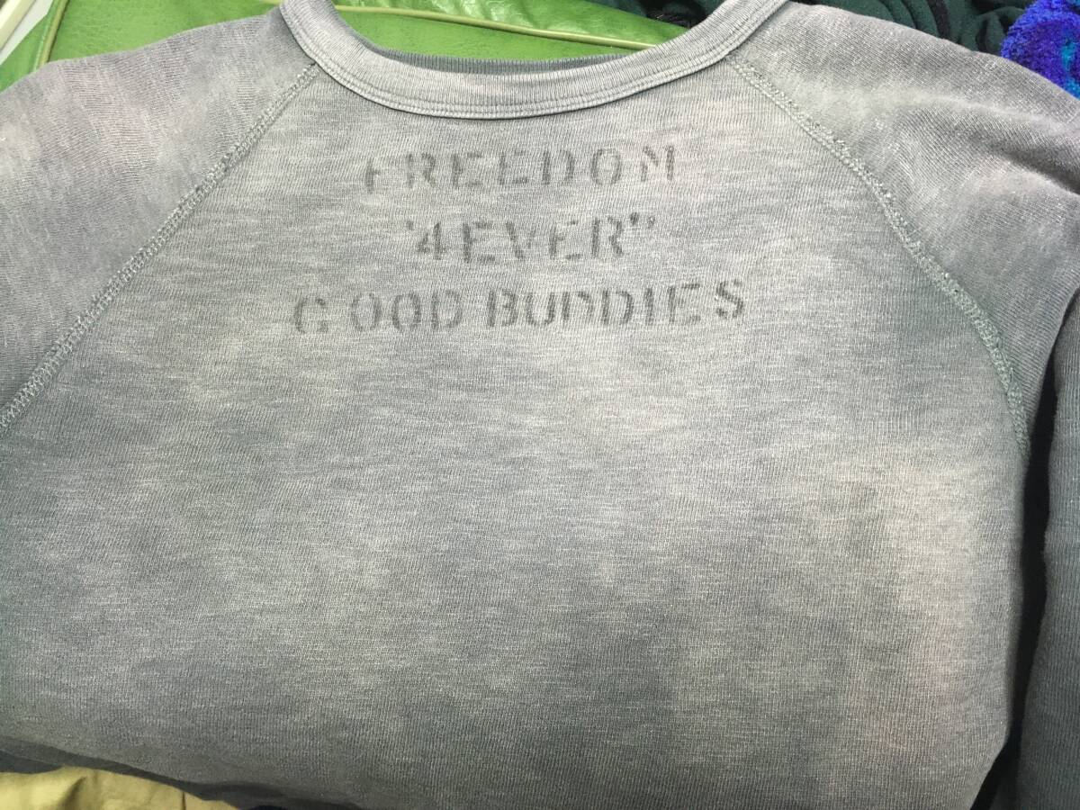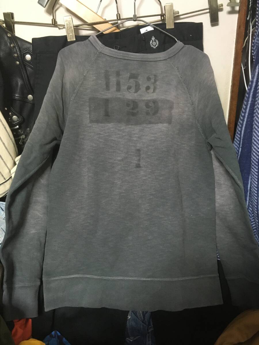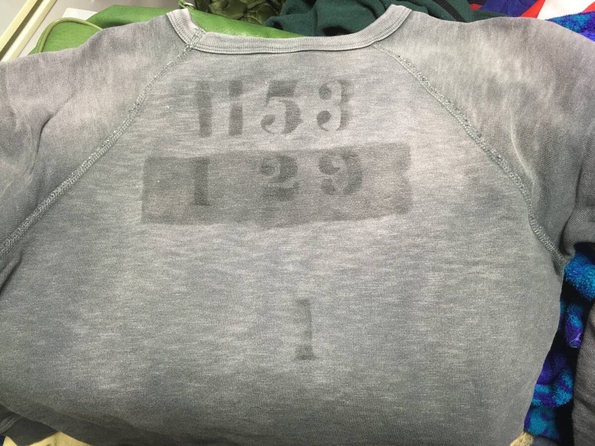前後にはヴィンテージの軍仕様のスウェットの様なステンシルプリントが入っております。
