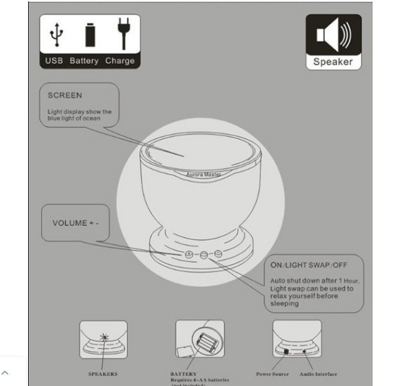 この海の波の光プロジェクターで海のなだらかな波紋をあなたの家に持ってきてください! 家のどの部屋でも使用できます。バスルーム、リビングルーム、ベッドルームまたは任意のスペースに適用されます。 12個のLEDプロジェクターランプが赤、青、緑、多色の間を循環し、ベッドやバスルームを静かなオアシスに変えます 内蔵ミニスピーカーは&mp3互換で、1時間後に自動的にオフになります 0Degreeから30Degreeの角度に調整可能 製品説明 1.新しいミニ波投影ランプ、シンプルで使いやすいモデリング。 2.バスルーム、リビングルーム、ベッドルーム、または任意のスペースに適用します。 3.いつでも輝かしい海を輝かしい自然の美しさで再現し、深海に沈んでいるように感じることができ、海は平和を受け入れ、 4.身体的および精神的リラクゼーション効果を達成するために、空間のロマンチックで、余暇および居心地の良い雰囲気を作り出す。 5.それはまた小さいステレオスピーカー、美しい環境を楽しむことを可能にしますまたすばらしい音楽を楽しむことができます 6. 4本の単三電池(別売)による電力は、外部USBおよび4.5V DCプラグ(付属)もサポートします。 7. 1時間後に自動的に閉じる自動スリープ機能、キーを押して閉じて開くこともできます 8.作り付けの小型スピーカーはとして、mp3スピーカー、親密で、使いやすい機能である場合もあります 9.海面のような投影された揺れる光は、バスルームやリビングルームでリラックスできます