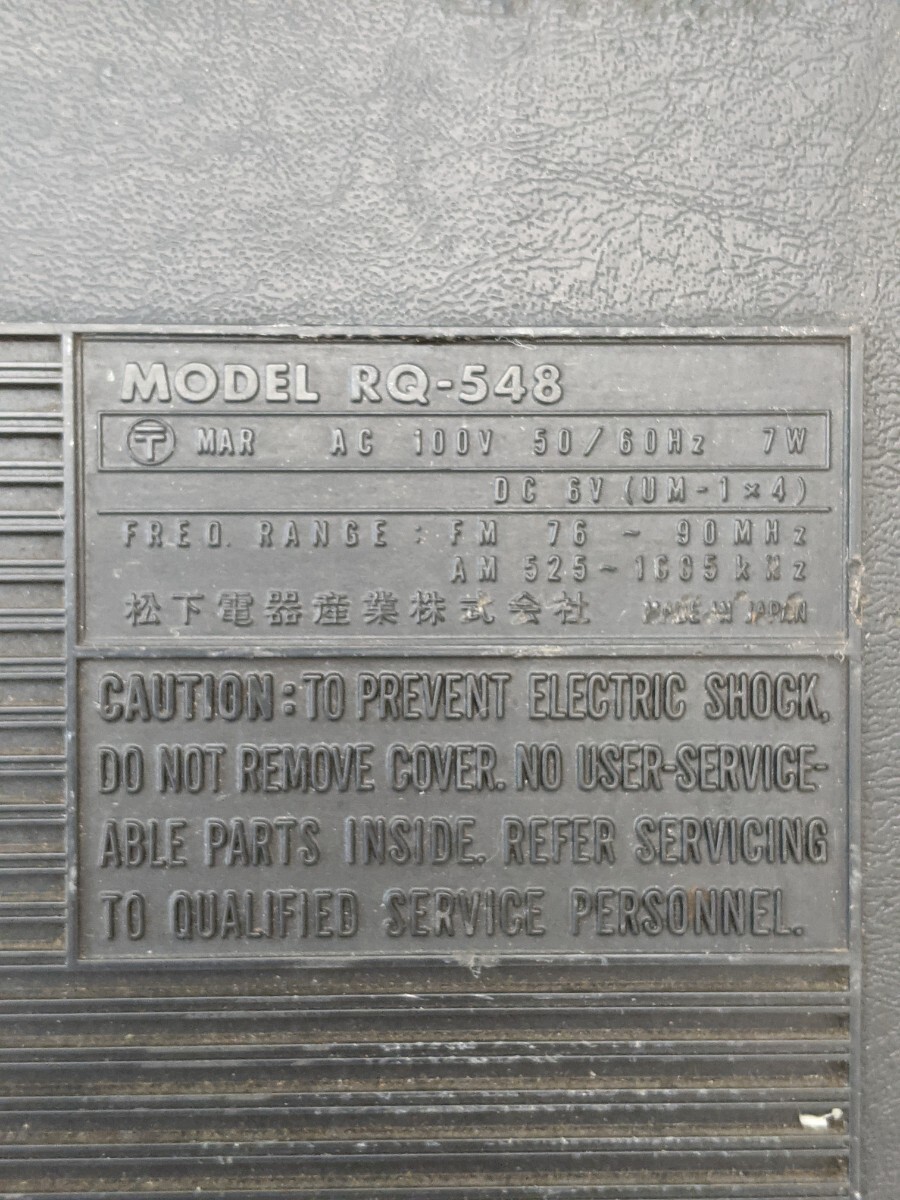 IY1389 National RQ-548 昭和レトロ AM&FMラジオ・カセットデッキ/ナショナル 通電&ラジオ受信OK その他詳細動作未確認 現状品 JUNK