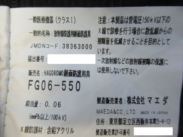 マエダ HAGOROMO 放射線防護用顔面防護具 一般医療器(クラスⅠ) FG06-550 y1153