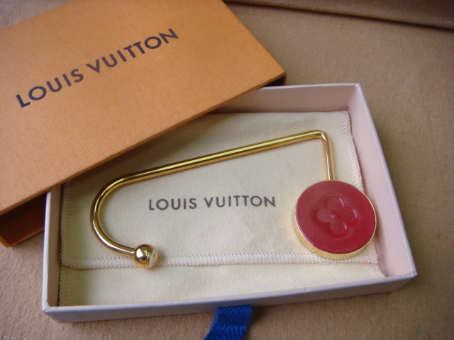 新品未使用 ルイヴィトン製 バッグハンガー モノグラム フラワー かばん掛け メタル ゴールド×レッド ノベルティ