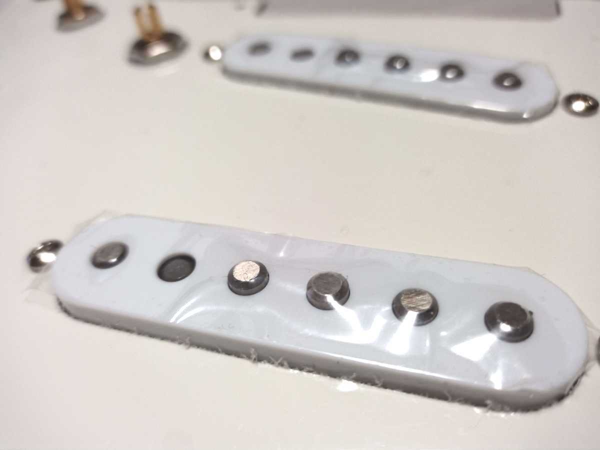 ピックの引っかかりを防ぐ高品質な面取りスタッガードポールピース