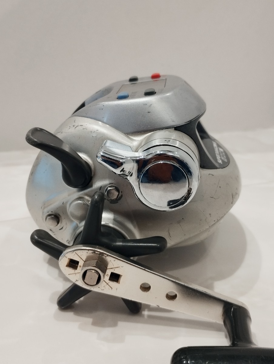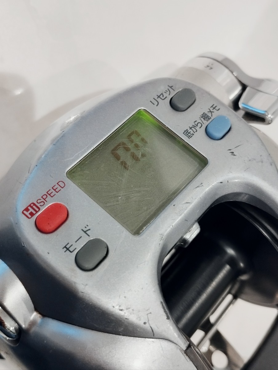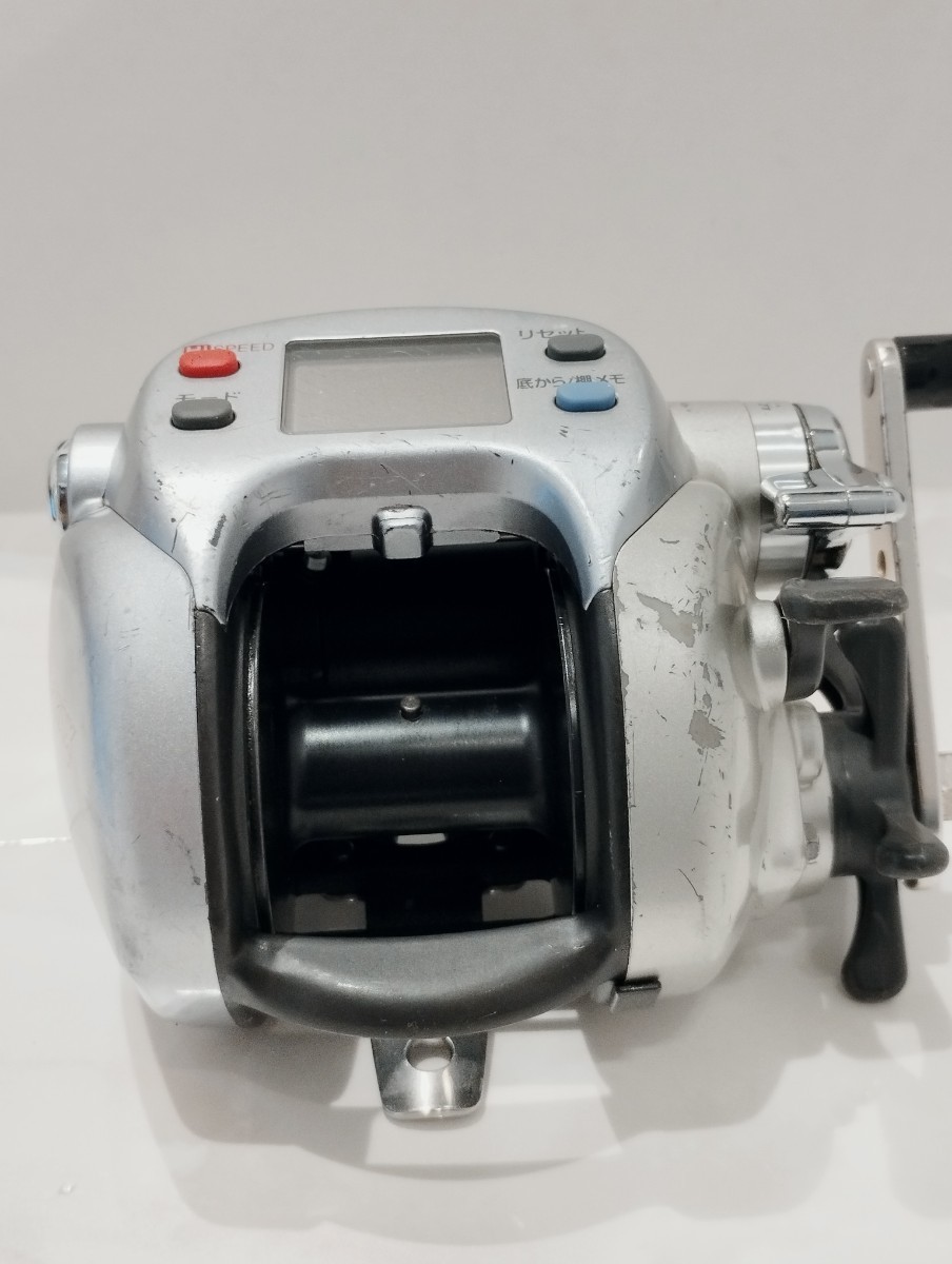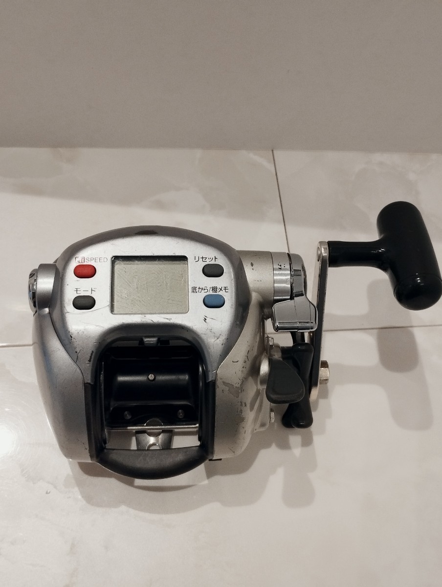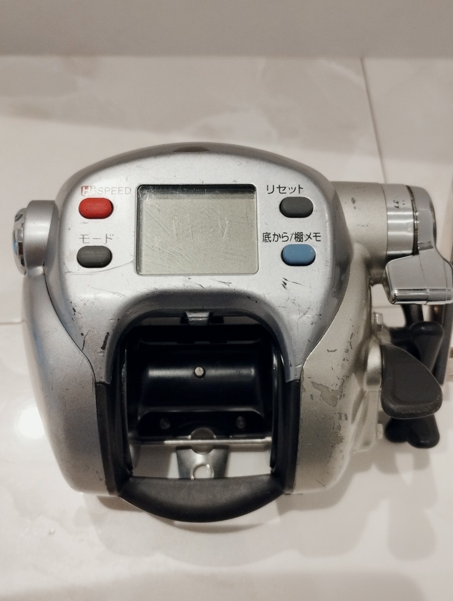 ★頂きもので、改造してあるのか、シーボーグかスーパータナコンか不明です。ハンドルにグラつきあります。通電し、液晶うつりますが、文字かけあります。カウンター動き、電動巻き上げできましたが、音が大きい気がします。実釣での動作確認はしていません。コードは付属しません。