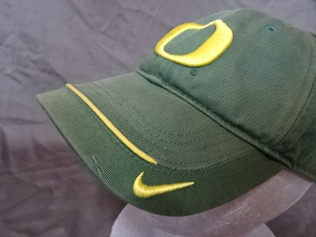 激レア USA購入 ナイキ【Nike】製 USカレッジ オレゴン大学ダックス 【OREGON DUCKS】 スウォッシュ【O】ロゴ刺繍入り キャップ 中古品