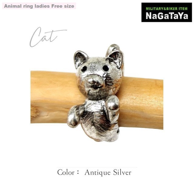 LIBERTAD アニマルリング ネコ 猫 AS アンティークシルバー 銀色 レディース フリーサイズ 指輪 動物 愛猫家 ペット