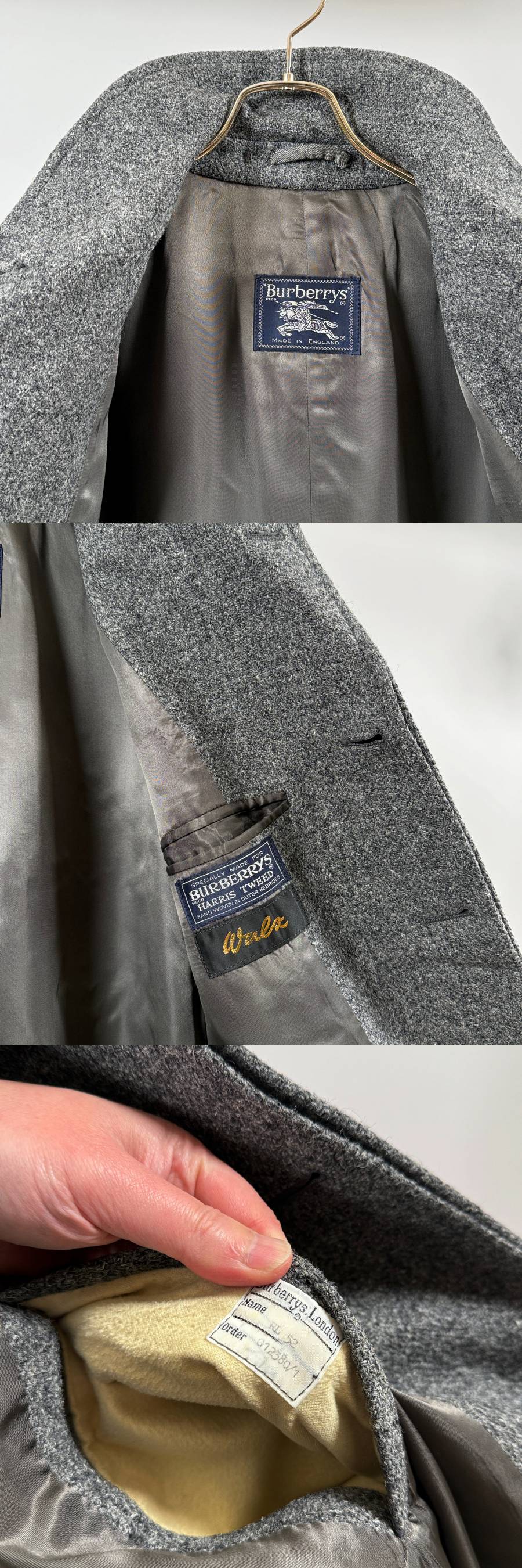希少《Saddle Shoulder / 一枚袖 同様》80s90s 極上品【 BURBERRYS HARRIS TWEED ビンテージ サドルショルダー コート 52 英国製 】