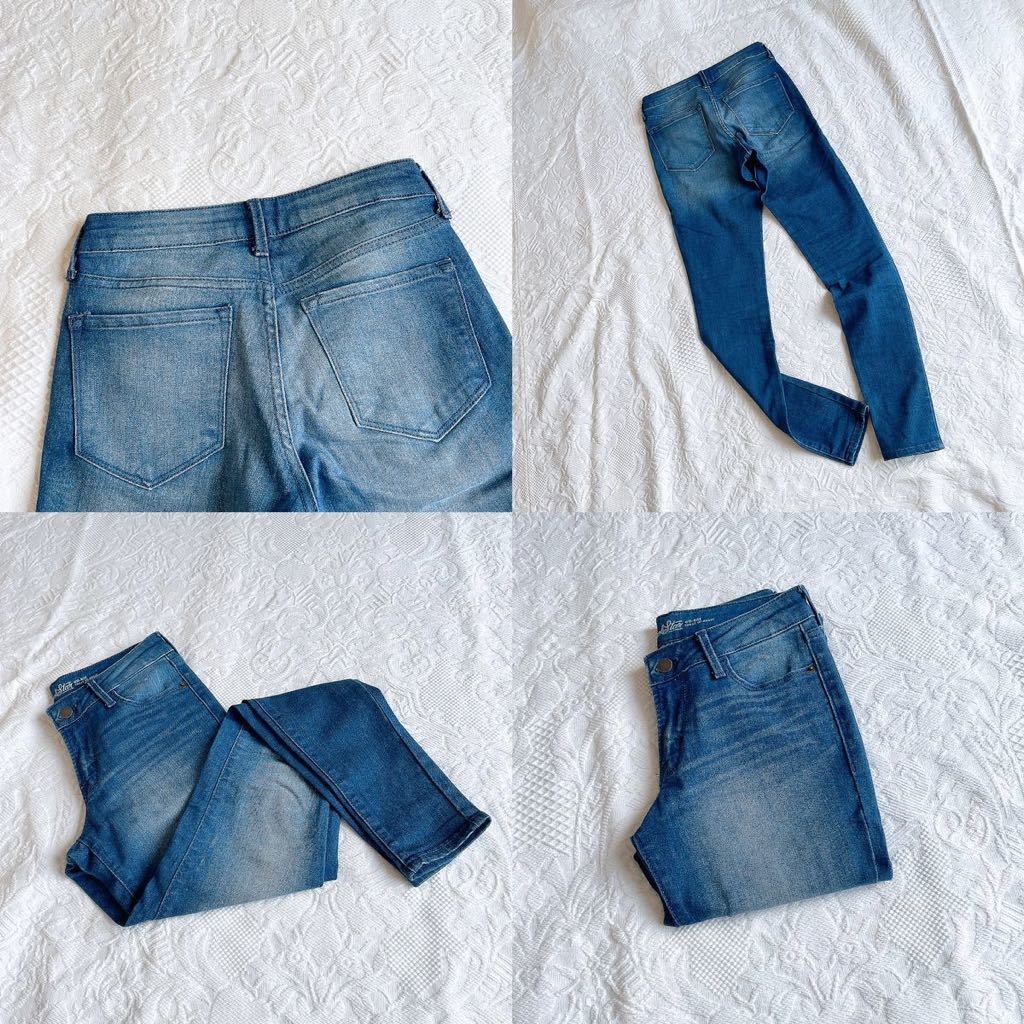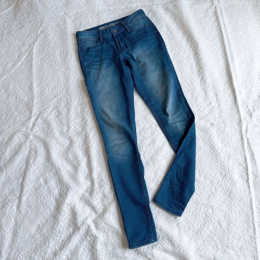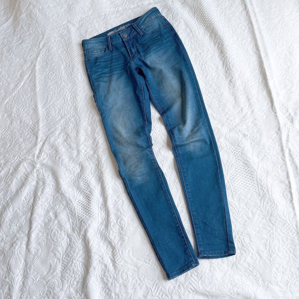 スキニー ストレッチ ジーンズ デニム パンツ ネイビー レディース ブルー 青 美ライン ミディアムライズ ミッドライズ