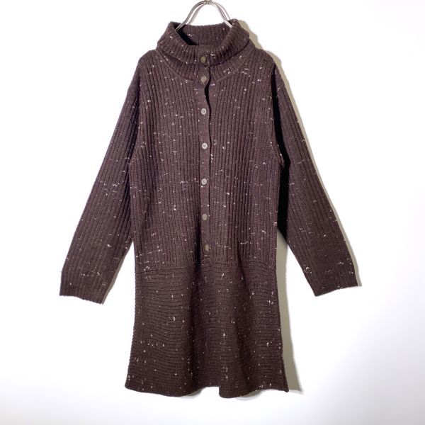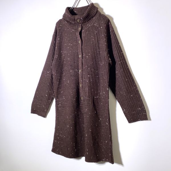 【レア】90s ヒロコビス HIROKO BIS ウール コットン ハイネック 長袖 ニットワンピース ブラウン 茶色 サイズ9 コシノヒロコ