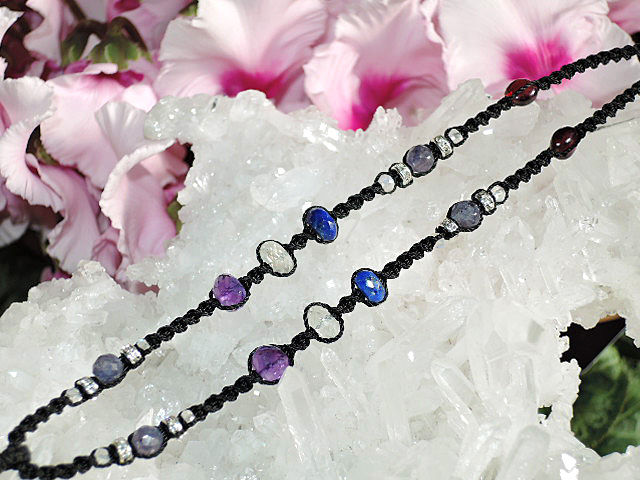 ペンダントトップは天然の石【 チャロアイト  和名:チャロ石 】 チャロアイトはスピリチュアルなストーン。 3大ヒーリングストーンの一つとも言われています。 (チャロアイト・スギライト・ラリマー) 浄化にとても優れた石で、持つ人を純粋で優しい気持ちにし、心身の働きを正常にする力があるといわれます。 その為、清く正しい考え方をしたい時に持つと良いと言われています。 精神と感情もバランスを保ち融合させ、互いに高め合いながら発展するよう導く力があります。 まるで インクをこぼしたような模様が表面に現れている石で実際にとても不思議な感じのる石です。 こちらのネックレスは常に体につけていられる密着感が魅力です。 ただ飾るだけではなくそれは体の一部分として感じられます 制作はすべて手作業で、石を包み込むようにして丁寧に編みこんでいます。 こちらはインドの聖地、パワースポットとしても有名なプシュカルとゆう地にてババとの共同製作です。(ババとはヒンドゥ教に身を置いた修業僧です) ネックレスは、1000回以上の結び目があり、一回の結び目ごとに『マントラ』(真言)を唱え祈りながら身につける人を守るように気持ちを込めて、ネックレスに仕立て上げています またヒマラヤ山脈の峰を流れる清水にて浄化していますのでとってもパワフルでピュアな エナジーを持ちます↑。 相性の良い石とは持ち主様とこころが通じあいます。 なので御自身でも本来持つ石のパワーをキープするためにクリスタルの上に置いてあげる。 満月の日にお月見をする、植物と触れさせる、清水できれいにしてあげるなど浄化とチャージ(充電)をしてください。 石を大切にすると、石が喜び、不思議なことに、もっともっとよい気や幸せな運を運んできてくれますよ^^ 【サイズ】 石全体の大きさ 23mm×22mm 厚み5mm トップの重さ  32ct ネックレスの長さ 36cm~60cm  男女兼用フリーサイズ 着用方法は留め具を上下に引きスライドさせます お好みの長さに調節できます 一緒に編みこんである石は下から左右対称に   【 ロイヤルブルームーンストーン・カット、アイオライト・カット、アメジスト・カット、プラシオライト・カット、ラピスラズリ・カット、ロイヤルブルームーンストーン・カット、アイオライト・カット、ロイヤルブルームーンストーン・カット、ガーネット 】 ガーネット以外はすべて5Aの極上カットです。 すべてが高品質な宝石達。 さまざまな石が自然の癒しを与えてくれます。 深みのある落ち着いた上品な雰囲気です。 肩を揺らすたびにキラキラ輝き華やかさをプラス  胸元をエキゾチックに演出します。 このネックレスは常に体につけていられる密着感が魅力です。 飾るだけではなくそれは体の一部分として感じられます。 身につけて1週間ほどで自然と体になじんできます。 常に身につけていただけます 素敵なポーチに入れてのお届けです☆ プレゼント用のBOXも可能ですのでご希望の方は落札後お知らせください。 こちらの商品は地球の産物につき、1点物になります。 世界でひとつ。あなただけの【素敵な宝石】を身につけてみてくださいね。 その他いろんな石さまざまなバリエーションにて出品中~  |