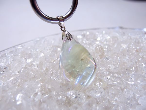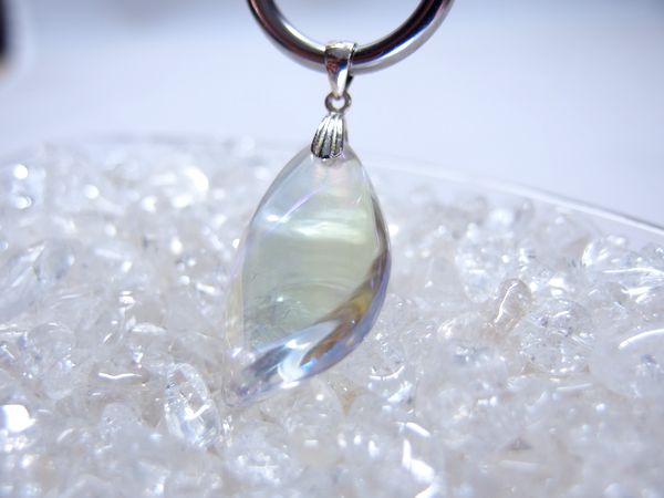 大変珍しい ツイストリーフ型 天使の輝き オーロラクォーツ ペンダントトップ 優しく、ほのかに輝くオーロラクォーツは虹色に発色するおススメの美しい水晶です★ 見ているだけで、とても癒されますよ★ こちらは、ツイストリーフ型で大変珍しく、流通がほとんどないので、なかなかお目にかかれないかと思います。 再入荷は、まずありません。 今回のみ、綺麗なトップが入りましたので、是非この機会にどうぞ★ ★ルースサイズ★ 2.9cm × 1.8cm ★オーロラクォーツとは★ まるでオーロラのような美しい光彩がとても美しく、アクアオーラと並んでアメリカのヒーラーを中心に非常に人気が高く、とても強いバイブレーションを持っています。 レインボーオーラは潜在能力を引き出し、持つ人の潜在意識を宇宙意識と繋げる力を持ちます。 心身すべてのエネルギーを活性化させ、波動性のエネルギーと生きる力を呼び込むといわれています。 また、アクアオーラと同じく、オーラの癒しと浄化や自己成長を促し、自己実現の助けにもなるともいわれています。 | ||||