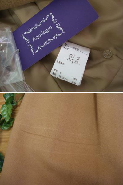 未使用訳あり◆Aquilegia◆ナローリボンベルト付 ウールコート 9/d160