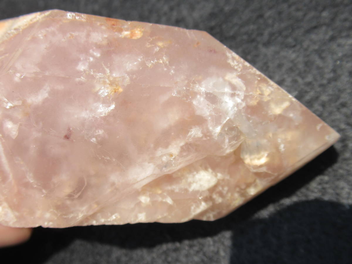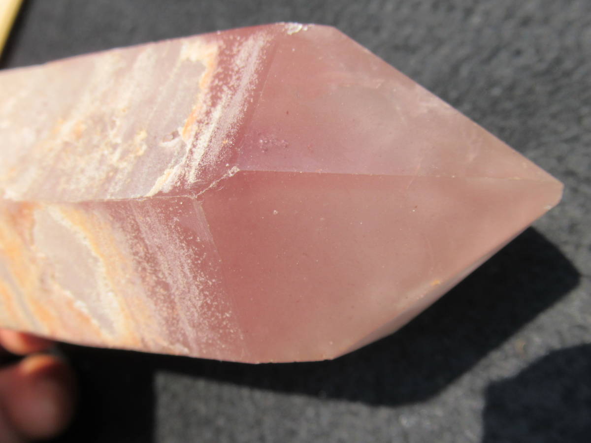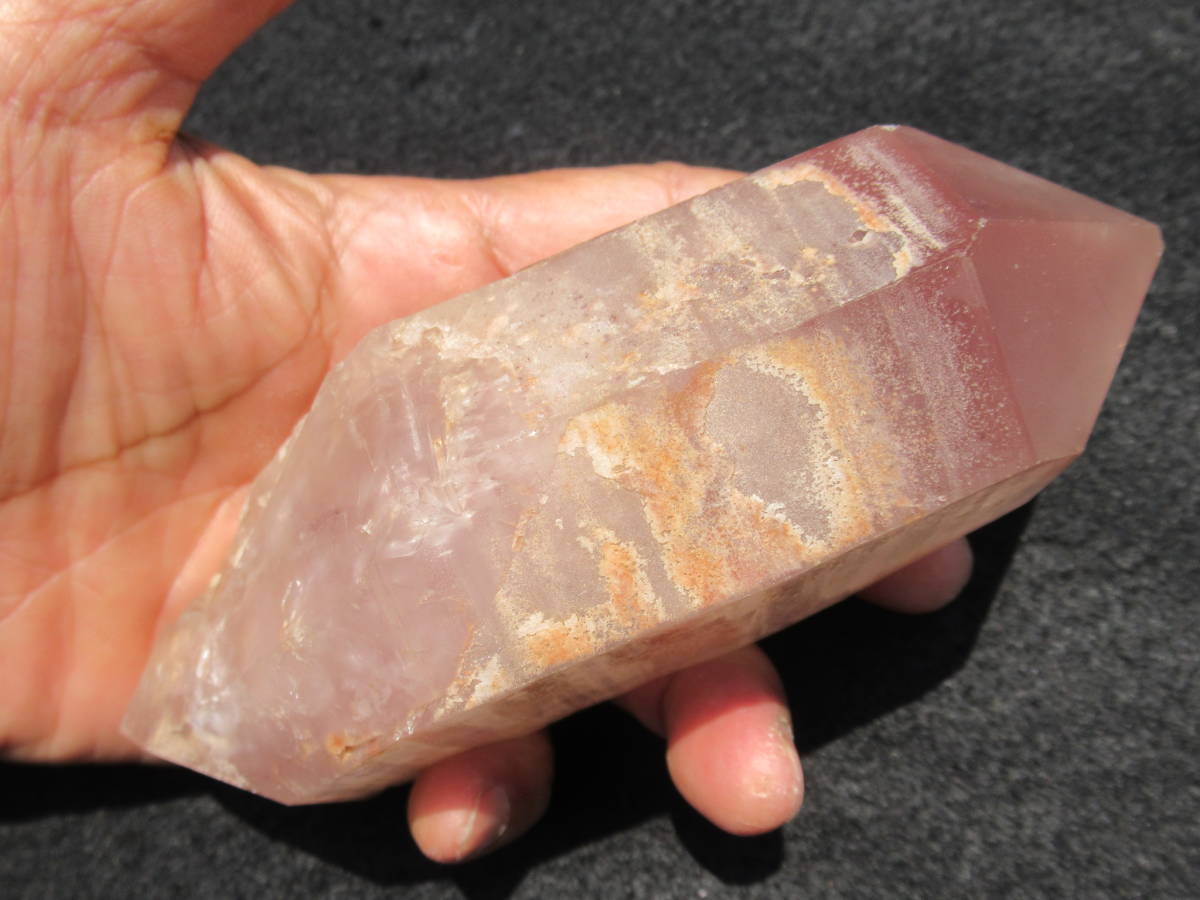 パキスタンの世界第2峰K2登山の拠点の町スカルドゥ地区Khapola Mine,Skardu産のインクルージョン水晶で、ツーソンミネラルショーに毎回初見のカラコルム地方の水晶を持ってくるディーラーからの入手品で、インクルージョン成分は不明とのことで前後ともこの1個しか見ていない品です。一般的なヘマタイト内包水晶より紫がかった色調で薄い海老茶色にも見えます。虫眼鏡程度の倍率では鉱物粒子が確認できません。両錐結晶で下部ほど濁りがあり色が薄くなっています。タテヨコ高さ65/40/135mmほど、重さ500gほど。丁寧に採取されたようで大きさの割にキズが少なく頂部わずかにスレがある程度。資料として2014年スカルドゥの街周辺を含むパキスタン北部の旅行記と写真CDを添付いたしますがこの鉱山へのアクセスはありません。送料無料。ps、Khapolaの異つづりKhapul。