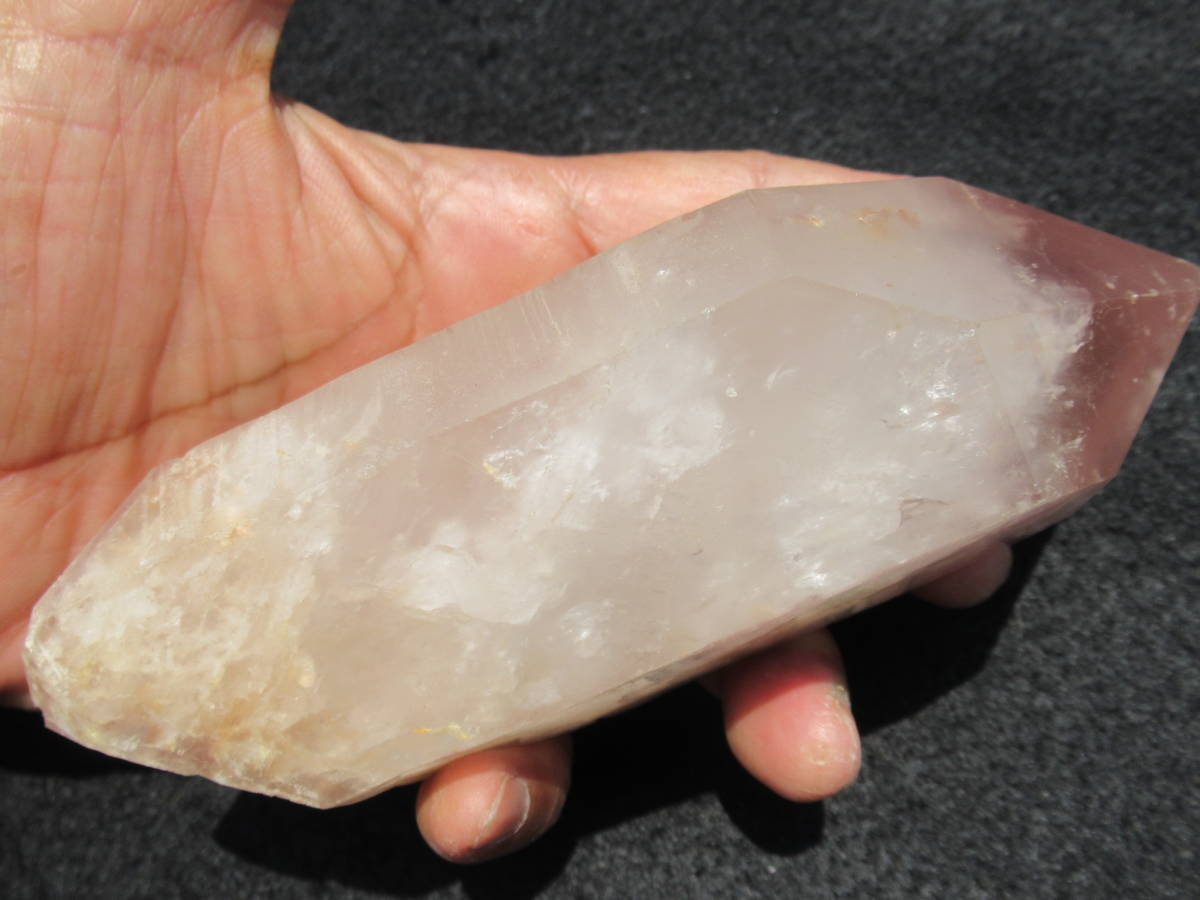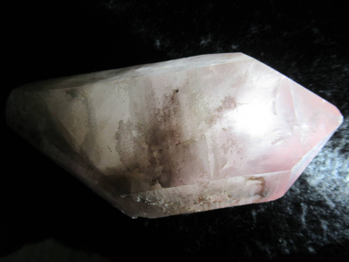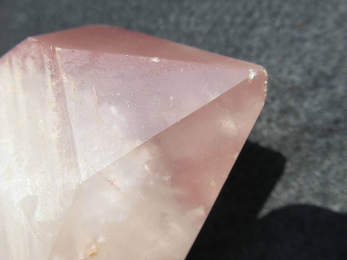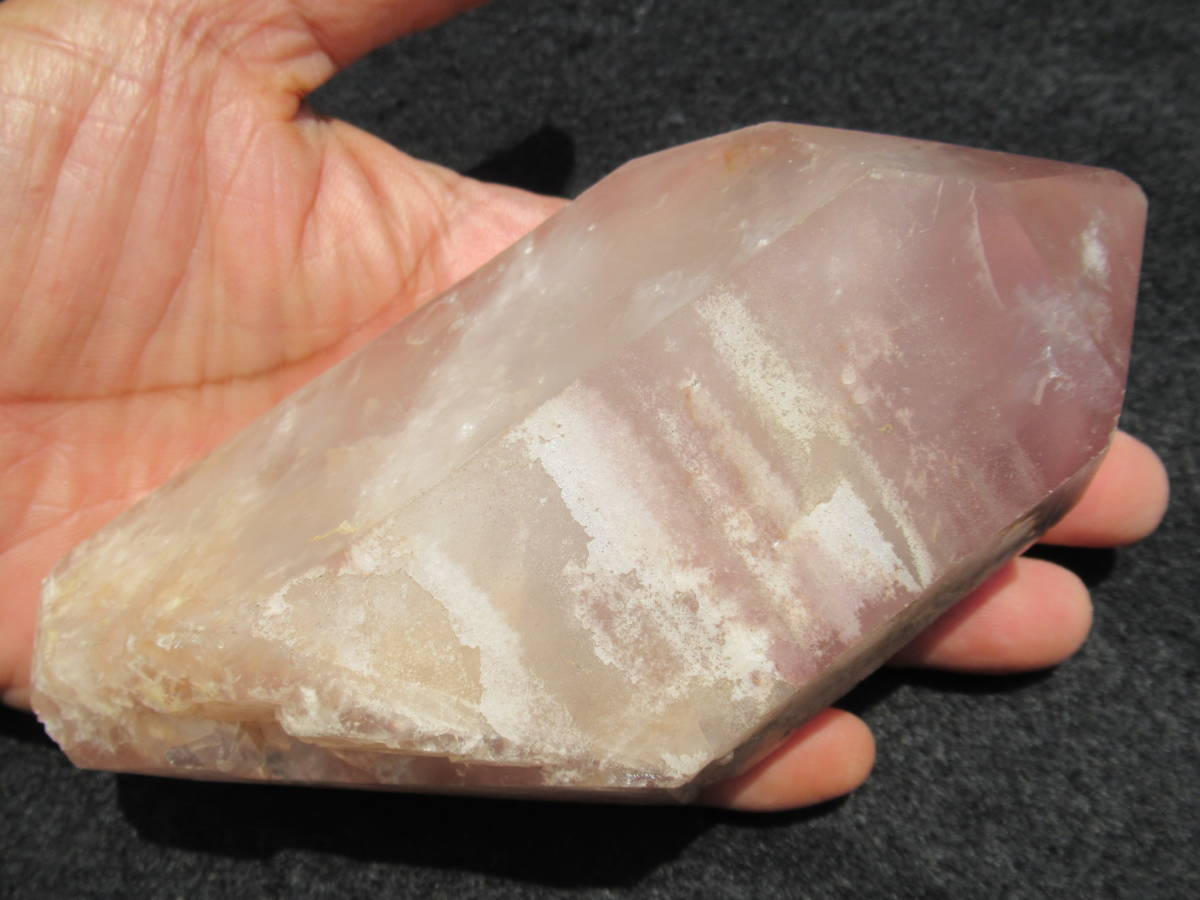 パキスタンの世界第2峰K2登山の拠点の町スカルドゥ地区Khapola Mine,Skardu産のインクルージョン水晶で、ツーソンミネラルショーに毎回初見のカラコルム地方の水晶を持ってくるディーラーからの入手品で、インクルージョン成分は不明とのことで前後ともこの1個しか見ていない品です。一般的なヘマタイト内包水晶より紫がかった色調で薄い海老茶色にも見えます。虫眼鏡程度の倍率では鉱物粒子が確認できません。両錐結晶で下部ほど濁りがあり色が薄くなっています。タテヨコ高さ65/40/135mmほど、重さ500gほど。丁寧に採取されたようで大きさの割にキズが少なく頂部わずかにスレがある程度。資料として2014年スカルドゥの街周辺を含むパキスタン北部の旅行記と写真CDを添付いたしますがこの鉱山へのアクセスはありません。送料無料。ps、Khapolaの異つづりKhapul。