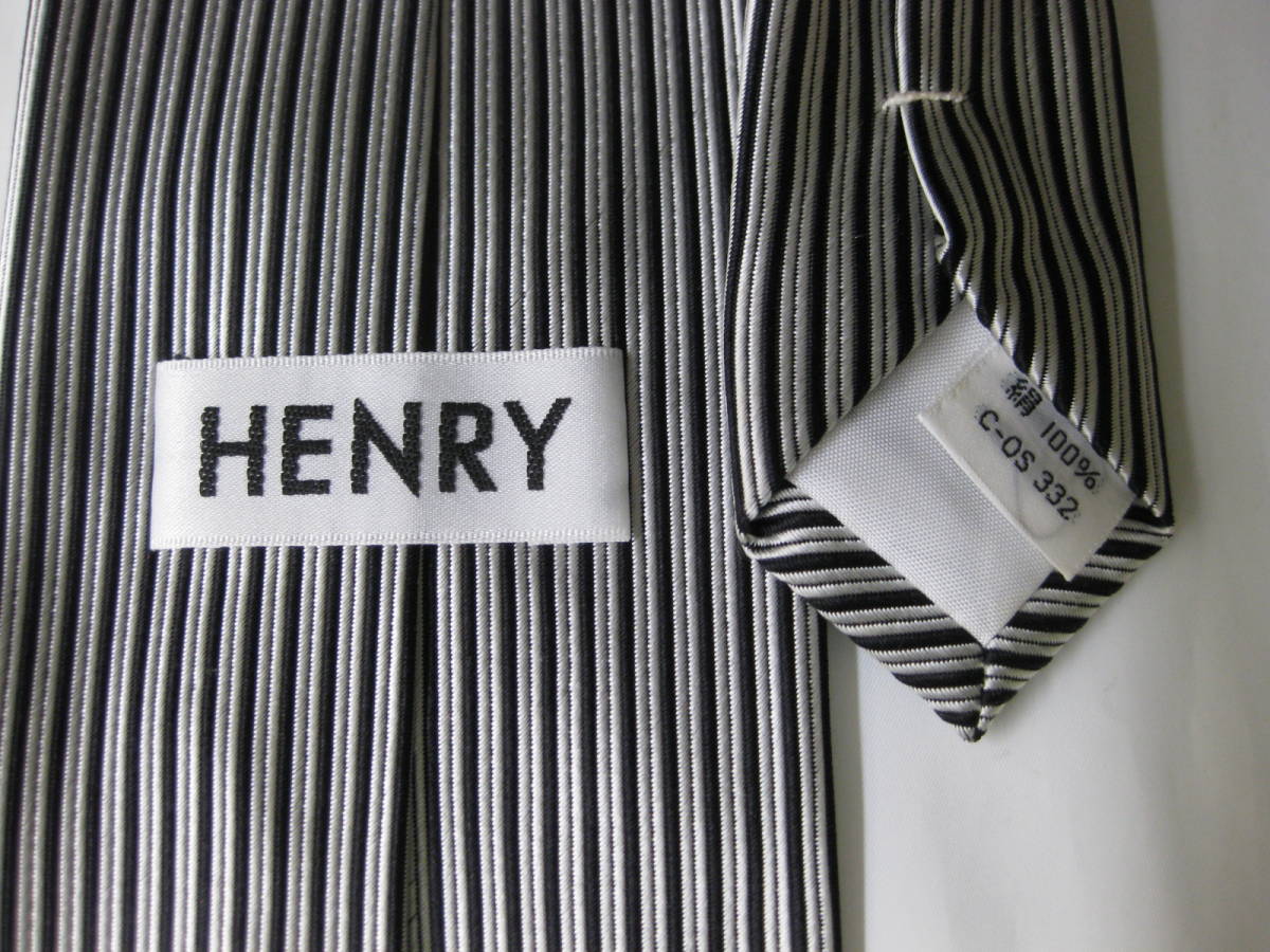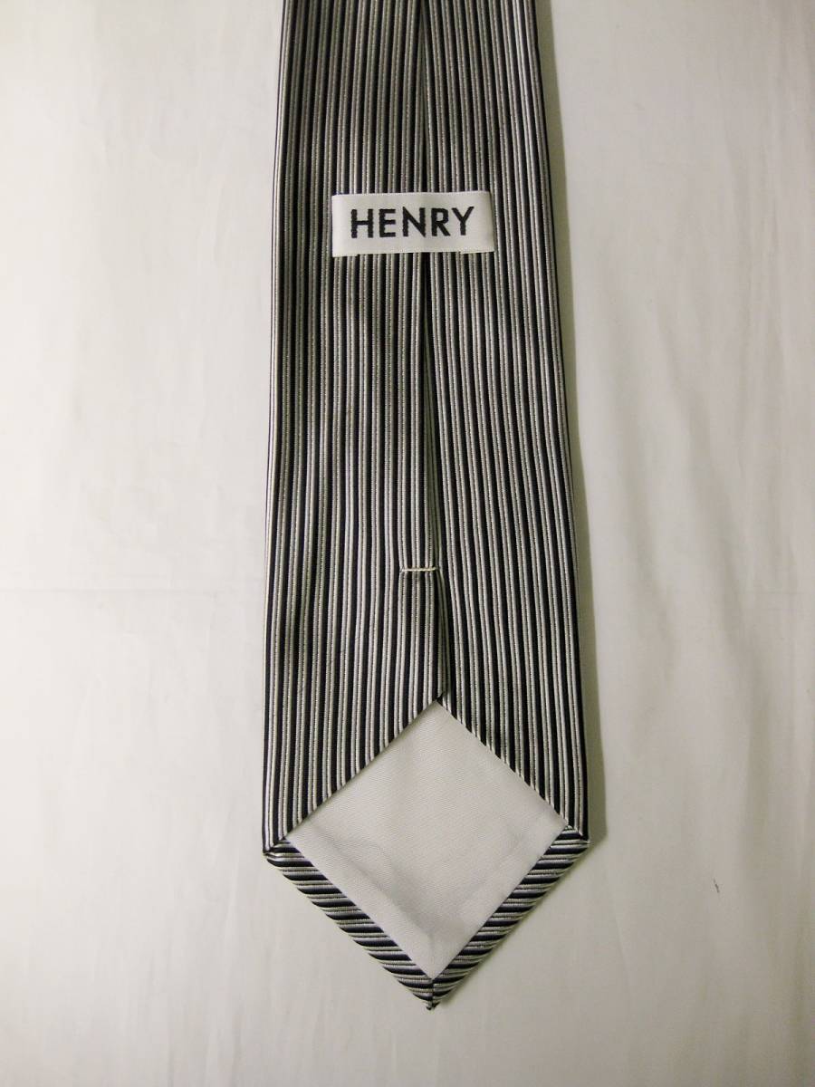 昭和レトロ HENRY シルク ネクタイ 当時物 ストライプ シルバー系 日本製