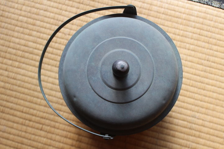 フタのつまみは木製です。欠けがありますがいい味になっています。 フタに凹みがあります。フタはスムーズに開け閉めできます。