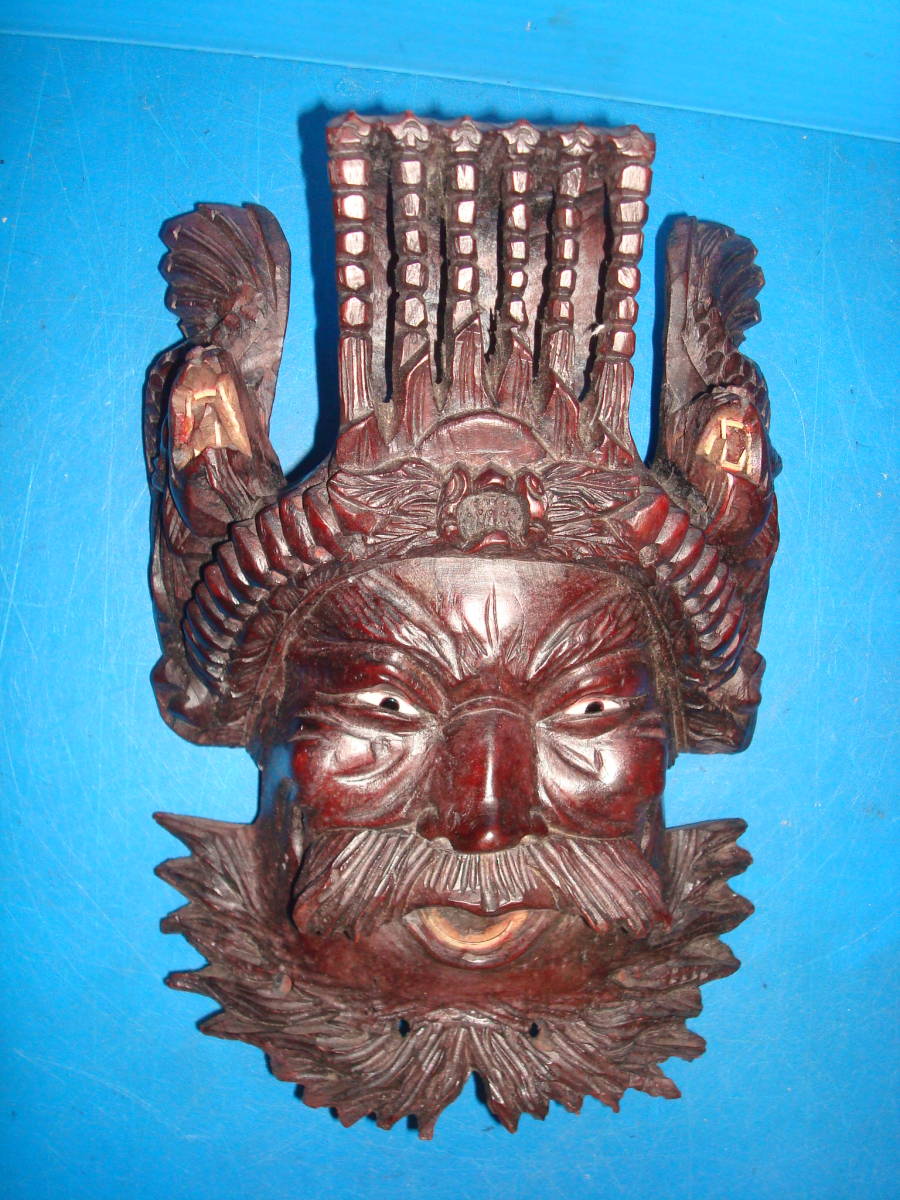 中国皇帝の木彫り面になります。一本の木より彫り出してあります。