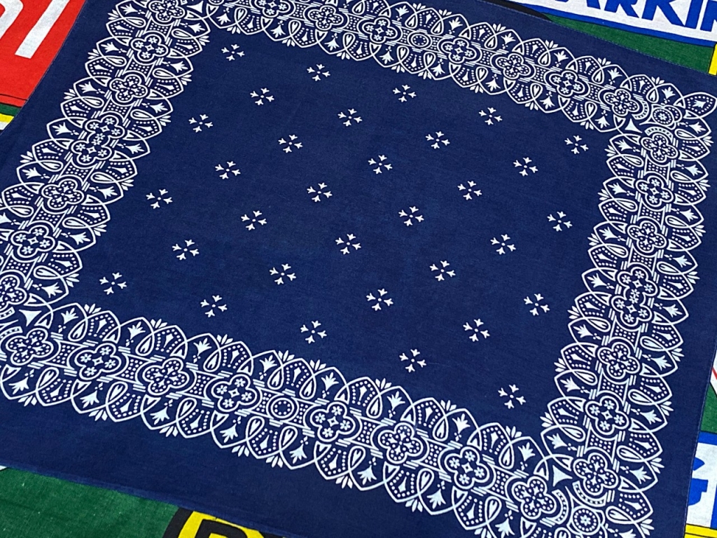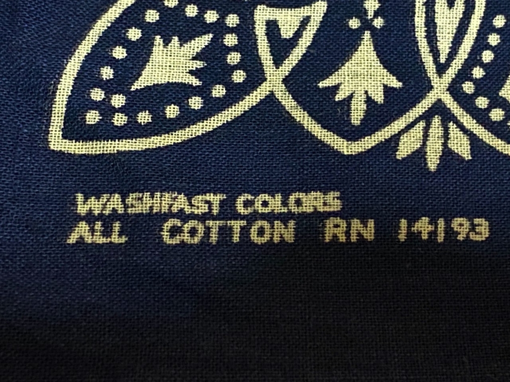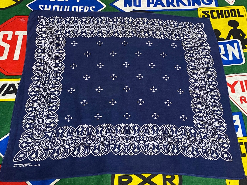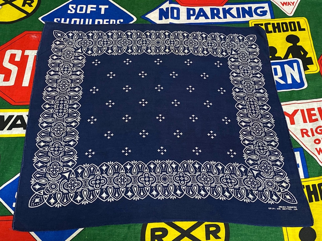 ★人気の対クロス柄がオススメ★Made in USA製アメリカ製WASHFAST COLORビンテージプリントコットンバンダナ60s60年代紺色ネイビーNAVY大判