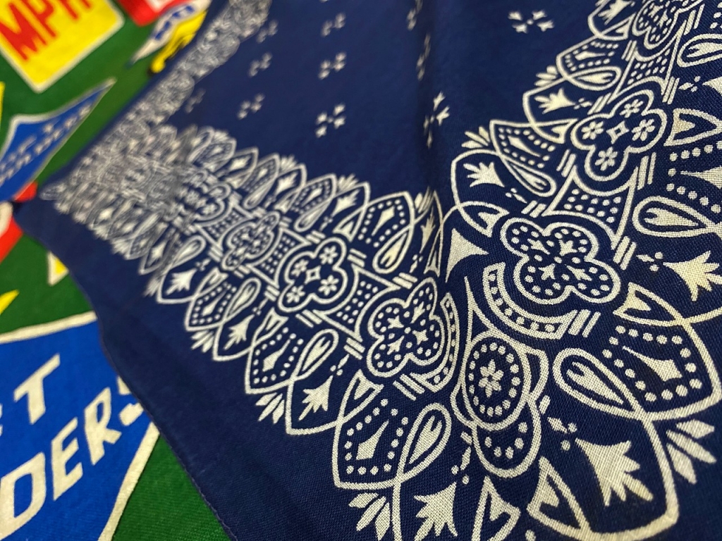 バンダナの専門書「ELEPHANT BRAND(エレファントブランド)」や「ELEPHANT BRAND Ⅱ(エレファントブランド ツー)」の中でも紹介されており、年々買い付けでも使える状態で見つけるのが難しくなっているアイテムの一つです。