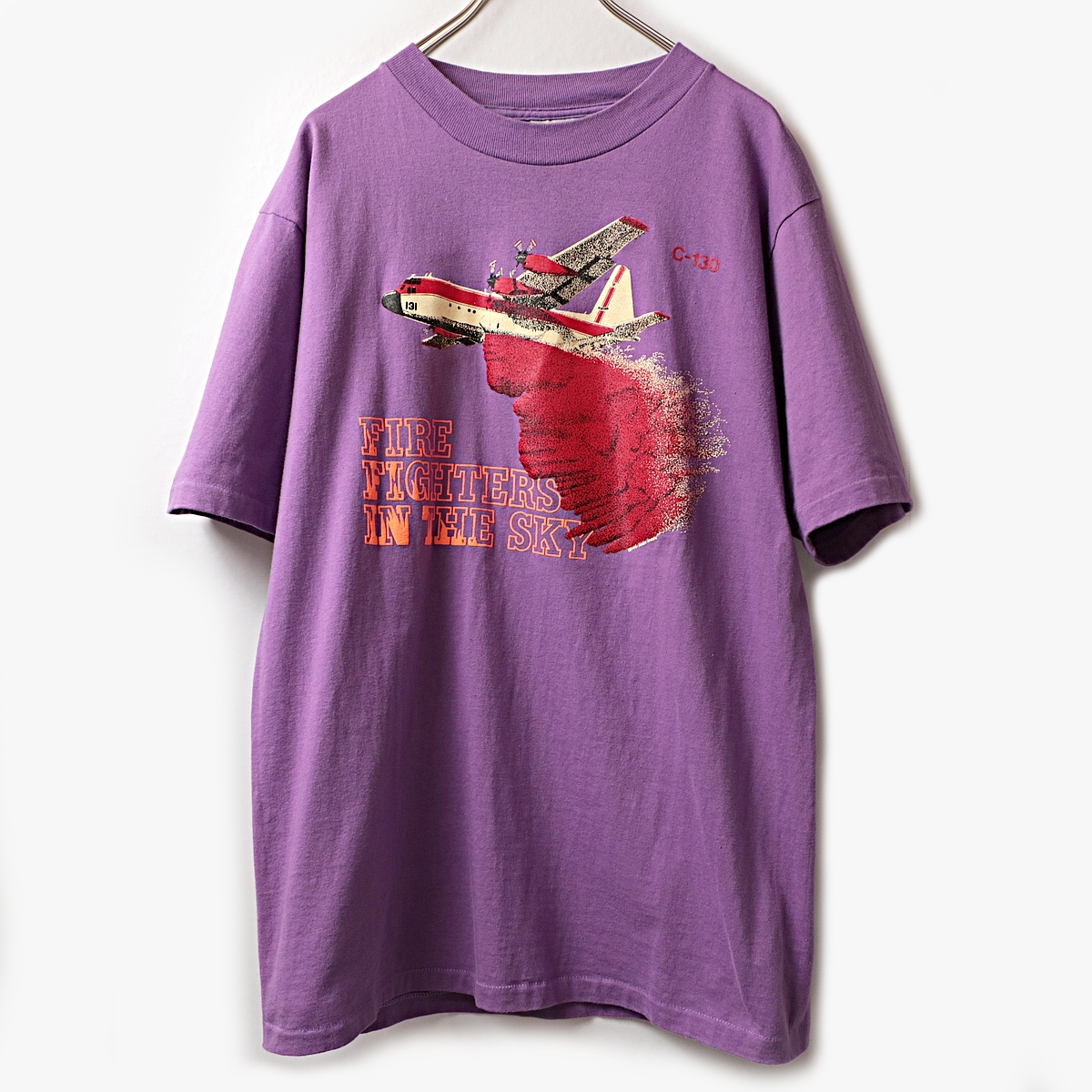 80s USA製 oneita 「fire fighter」C-130 プリント Tシャツ 古着 used