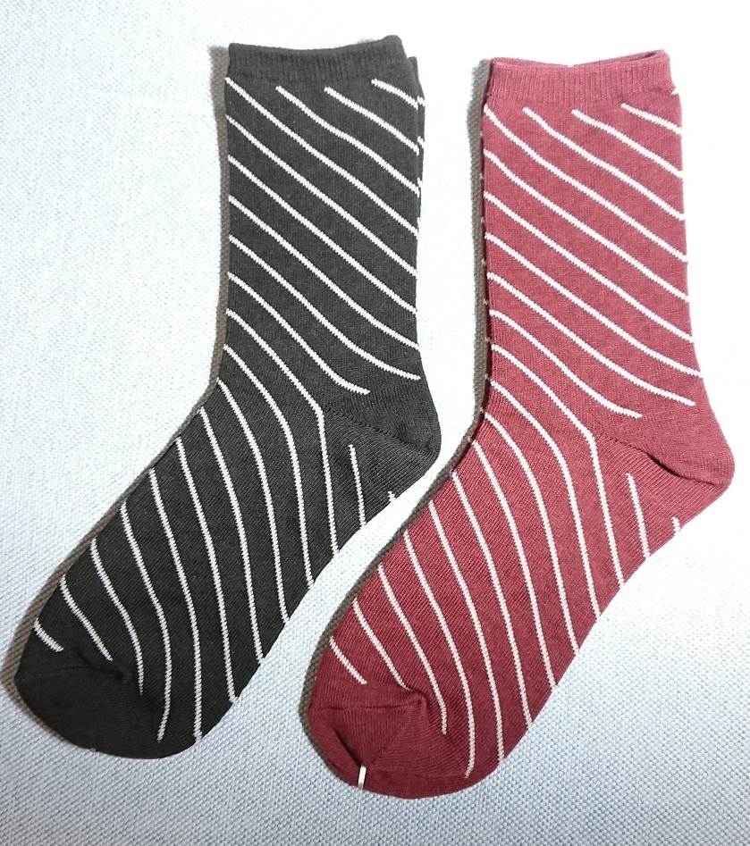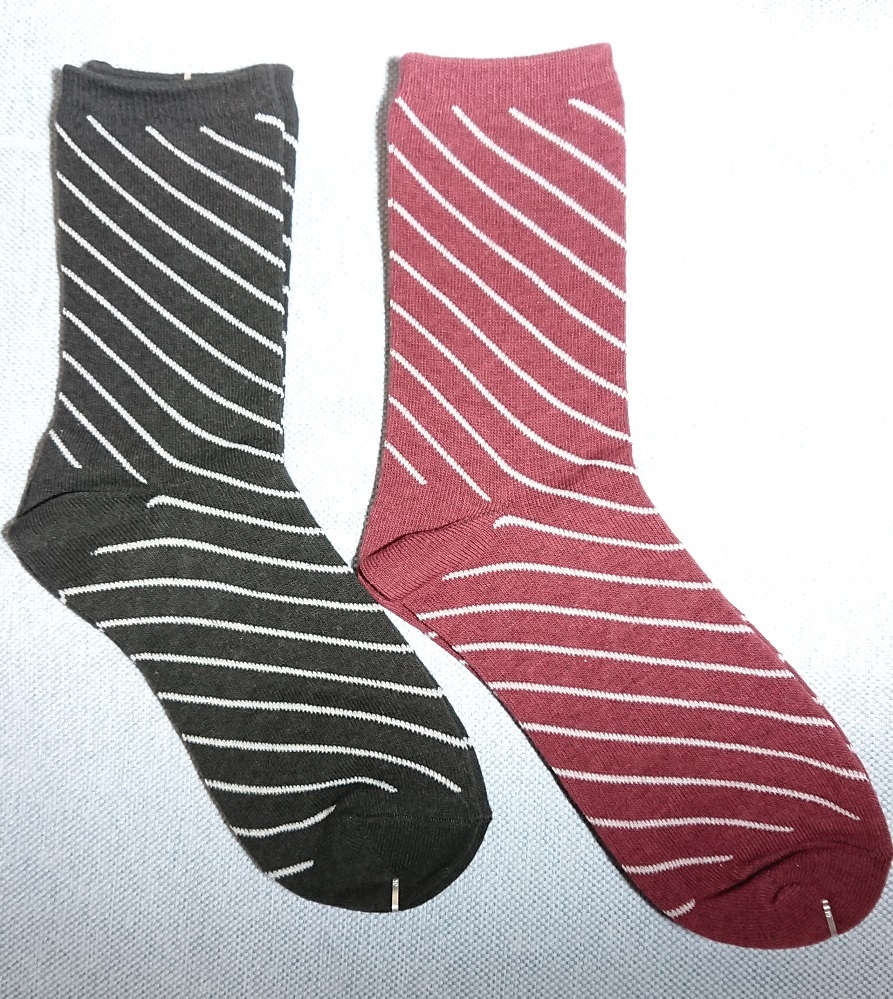 クルーソックス 斜線ボーダー 2足セット レッド・ブラック 23~25cm U26670-443