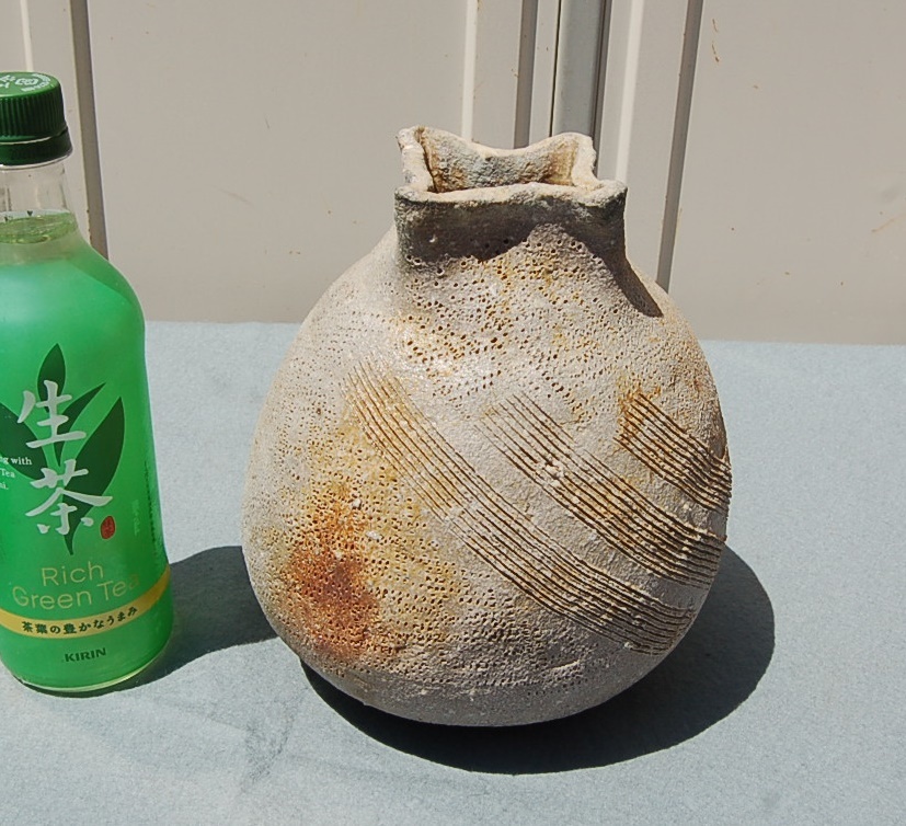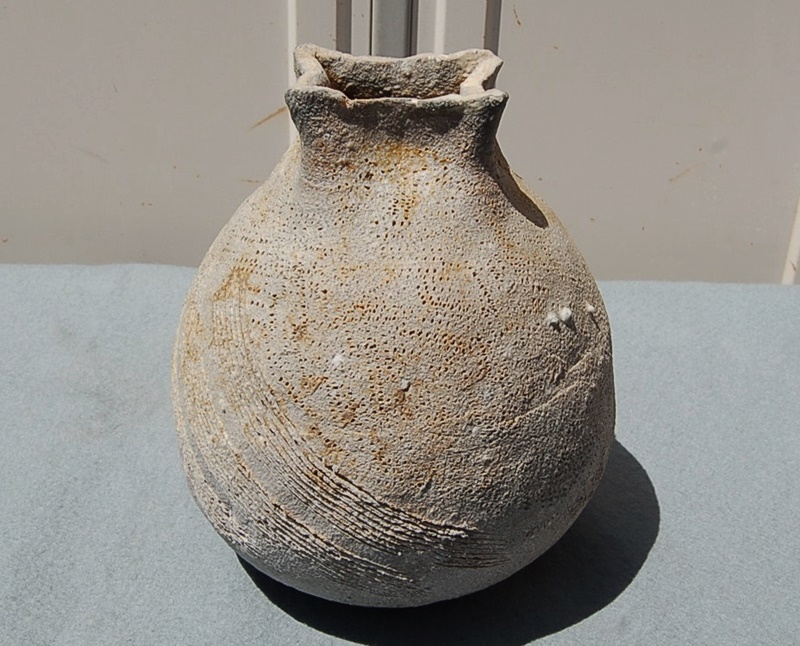 土器風 胴径約16㎝ 高約21㎝1.7㎏ いびつ感あります。手捻り作品と思われます。