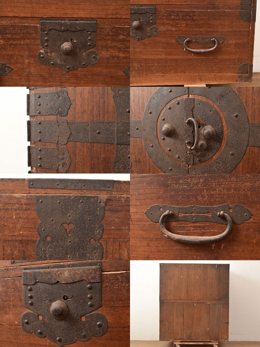 R-049116 アンティーク家具 明治期  観音開き戸 総桐材 隠し付き 十字金具が魅力的な重ね箪笥(観音箪笥、衣装箪笥、時代箪笥)