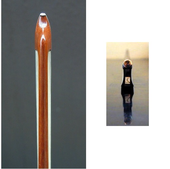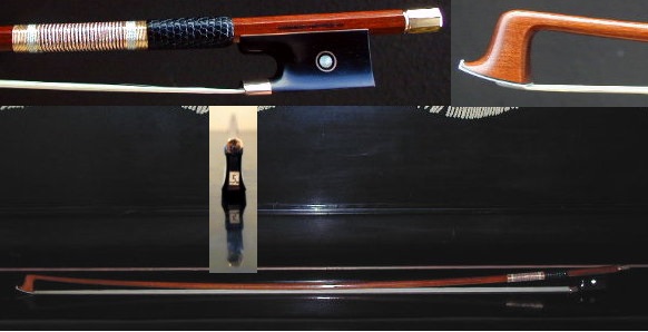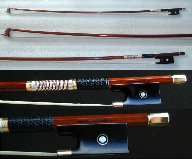 ★バイオリン楽弓★名職人RONG-DI MA作★E.Sartory(サルトリー)レプリカ 出品価格は消費税込み表示です。 お求めの際には入札前に是非試奏されます事をお薦め致します。 今回出品させて頂くバイオリン楽弓は Eugene Nicolas SARTORY 作の楽弓のレプリカです。 しなやかさと機敏さを兼ね備えている点が特徴です。 ラウンドスティック、大変美しい仕上げになっています。 やろうとする動作にしっかり応えてくれる反応性も良し、 運弓が楽に感じられ、弓元の切返し操作でその心地良さが実感出来ました。 ゆっくりしたスピカートから自分の限界点までの 高速のスピカートが均一に繋げ操作性も大変良い弓です。 良質フェルナンブーコ材で製作され、音色が大変良い弓です。 ♪特徴 最上の厳選フェルナンブーコ材、 全長:73cm、 重量:61.2g、 高級黒檀フロッグ、 アイは外径Φ7.5mm、内径Φ4.0mm、 14K、ローズ・ゴールド、 馬毛は全長125cm強のモンゴリアンを利用した最上毛、 (何と残った馬毛から1/16Vnサイズ用の毛が取れる長さで MA先生に実際見せて頂きました。) 2018年7月、ドイツのハンブルクにて製作、 刻印が棹上にあります。 実物のサルトリーはヘッドを真上から見たとき、 非対称で山の稜線も曲がっているのですが 今回の弓はお写真では判りにくいですが 若干だけその特徴を盛り込んでいます。 ♪留意点 フロッグの後ろに番号が書かれたシールが 貼ってある場合がありますが納品まで剥がさないでください。 (傷はありませんが確認したい場合、 剥がした後に付けておいてください。) ♪サービス 御希望でしたら一回目の毛替えはRONG-DI MA自身が 棹の具合を再確認するのと同時に無料でやってくれるそうです。 【御参考】 ♪製作者のRONG-DI MAは現在の中国の弓製作者の第一人者で 北京中央音楽院の林教授、カナダの音楽大学教授、 上海クァルテットの全員、等々のプロのバイオリニスト(ソリスト)達にも 大変人気のある弓製作者です。 ♪2002年のチャイコフスキーコンクールVn演奏部門第二位の方も RONG-DI MAの弓で入賞していますし メニューヒン国際コンクールジュニア部門優勝者においても RONG-DI MAの弓を使って優勝を成し遂げた方がいます。 ♪その後、アイザック・スターンに才能を見出されたJIAN WANG(王健)、 ニューヨークのジュリアード音楽院教授のチョーリャン・リン(Vn) にも提供されました。 【提供履歴】 過去にはKittel、Sartory、Peccatte、Tourte、Voirin、Persoit、 Lupo、Pajeot 、V.FETIQUE、 N.Simon、Tubbs、MALINE等 のモデルをお譲りしており、皆様に気に入って頂いております。 現役のプロの方にもこの弓の性能を確認して頂き、納品させて頂いております。 尚、RONG-DI MAは1996年にもアメリカで定評のあります VSAコンクールにバイオリン弓、ビオラ弓、チェロ弓、コントラバス弓の 4本を出品し全ての作品で賞を取っています。 RONG-DI MAは北京で行われた国際弓製作コンクールの審査も務められ、 前回優勝したギョーム(息子)に金賞を授与しています。 MA先生に「フェルナンブーコ材にはどのような種類があるのですか?」と 聞きましたところ、「50種程もあるのですが大別すると2種に分類され・・・・」と 永遠話が尽きませんでした。本当に凄い研究家だと思いました。 RONG-DI MAの作品は楽弓に対する熱心な研究がにじみ出るかのように その製作誠意が伝わってきます。棹はおろか、ネジ、フィッティングまで 全てRONG-DI MAが製作していて出来る限り当時の再現を試みています。 勿論、製作のための道具まで彼自身で手作りされています。 製作者RONG-DI MA希望の提供価格は希望落札価格に設定させて頂きました。 お求めの際、先に入札せず、是非試奏されます事をお薦め致します。 先に落札し、万が一の返品となるといかなる場合でも 送料と落札手数料を差し引いた御返金になってしまい、 お客様のご負担が大きいからです。 (落札手数料は当方でなく、YAHOOが先に徴収します。 当方はその立替は致しません。)