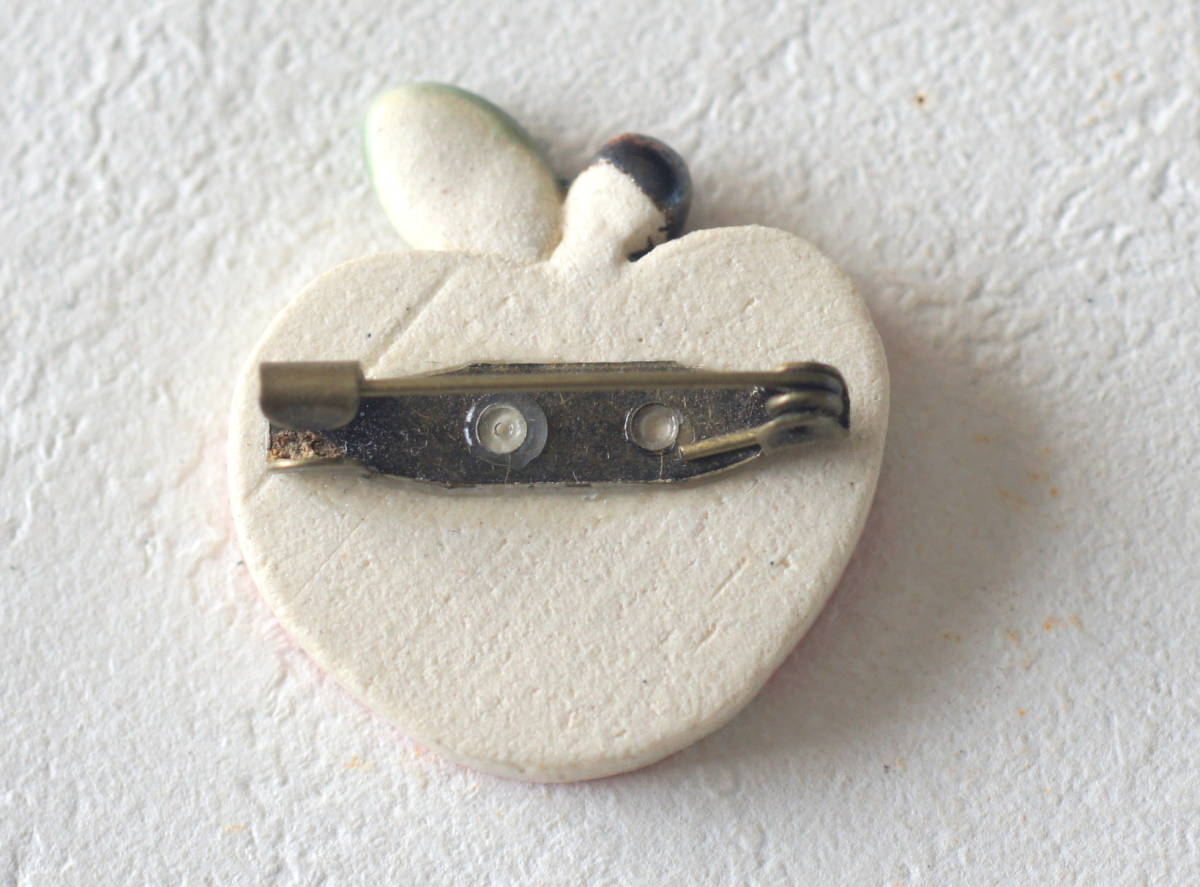 陶器製?可愛いリンゴのブローチ