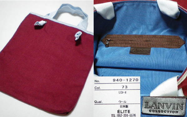 ◆LANVIN(ランバン)のウールトートバッグSAMPLE新品です。 定価は¥30.240です。 実寸サイズ 横33.5cm×縦36.5cm×マチ2.5cm ※素人採寸につき誤差が生じますのでご理解下さい。 カラー ボルドー系 素材 ウール |