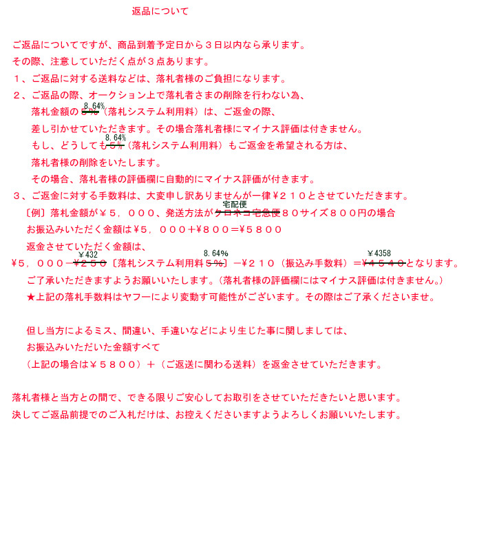 Ⅵ.弃标也必须全额支付该拍品(成交价+消费税+银行转账费+日本邮费+代购费)。