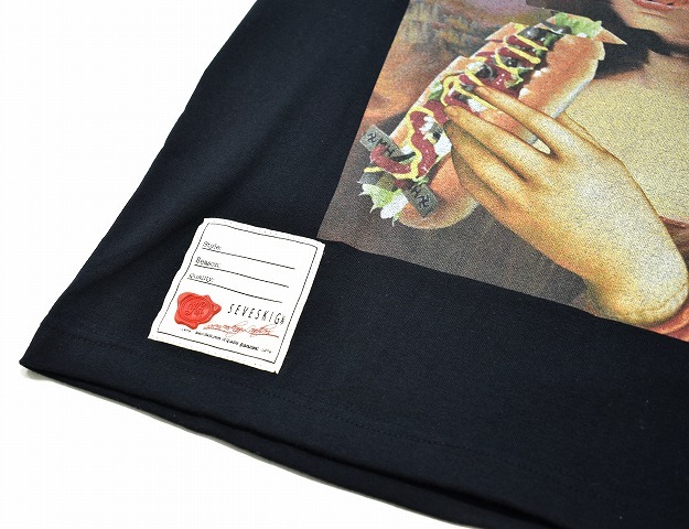 「SEVESKIG (セヴシグ) 」× 「texta800」 の モナリザプリントTシャツ AC-CT-SV-KS-7002 コラボ クルーネックT-SHIRT S/S TEE 別注 です 。 ・素材:コットン100%。 ・カラー:ブラック。 ・表記サイズ:M 。 ・実寸 肩幅 約45cm・身幅 約51cm・着丈 約64.5cm・袖丈 約20cm。(多少の誤差はお許しください) セヴシグ恒例の人気のスポットTシャツ。 本作は新進気鋭のアーティストとコラボレーションした、この企画だけのスペシャルグラフィックです。 アーティスト:texta8000 10代前半の渡豪を機に制作活動を始め、グラフィックワークの他にもMINDGHETTO名義で音楽制作も務めるアーティスト。 モナリザが持つホットドッグは、過去にSEVESKIGが反戦の意味を込めて作った作品から継続されているモチーフ。 首周りに補強を兼ねたトリコロールテープ、裾部分にはアクセントとしてオリジナルピスネームを付属。 インパクト大のプリントがポイントです。 新品。日本製。定価¥7400+TAX。 かなりお値打ちだと思います。この機会にぜひ!。 他にもいろいろ出品しています。 管理番号:271908MY-084937★ PD192508-400 |