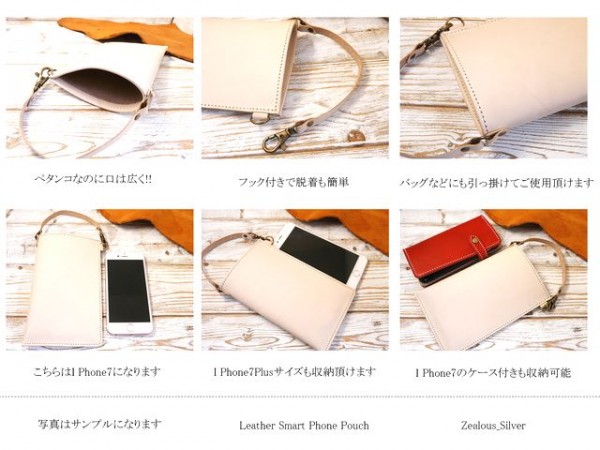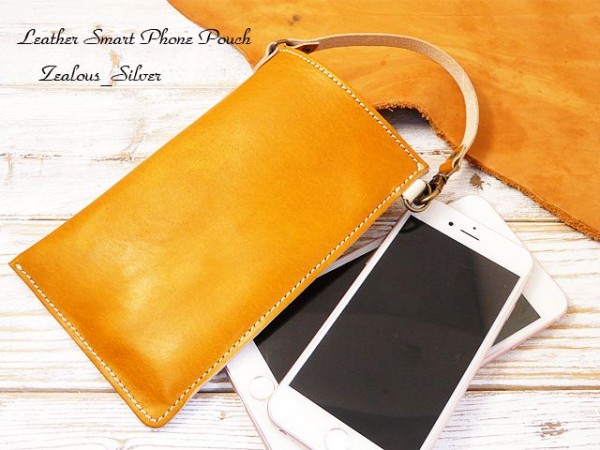 ペタンコ薄型!!多機種対応レザースマホポーチ