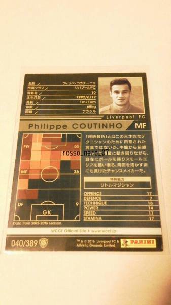 ☆WCCF2016-2017☆16-17☆040☆黒☆フィリペ・コウチーニョ☆リバプールFC☆Philippe Coutinho☆Liverpool FC☆