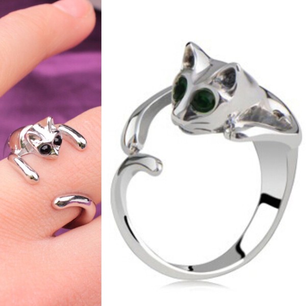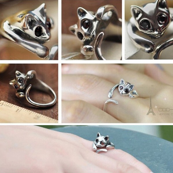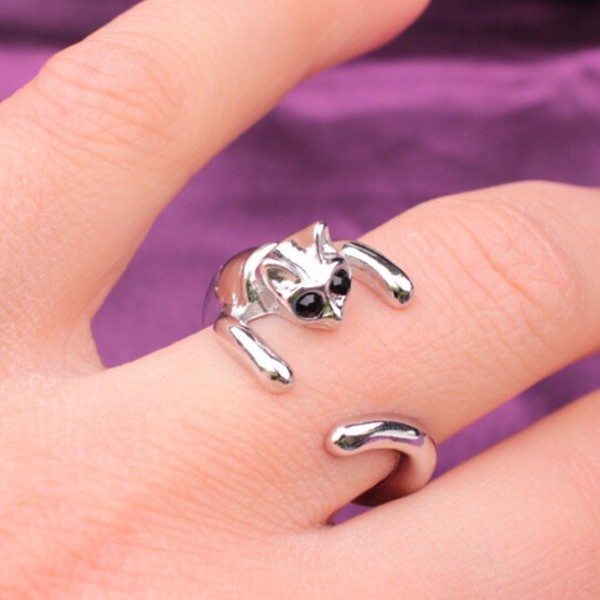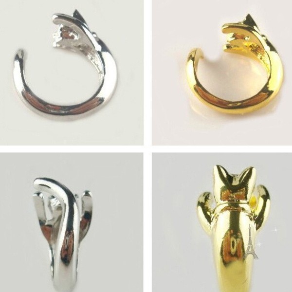 抱きつきネコフープリング 猫 ねこ 9~23号 指輪 ゆびわ フリーサイズ アクセサリー ゴシック ロリータ パンク ハロウィンやイベントに♪