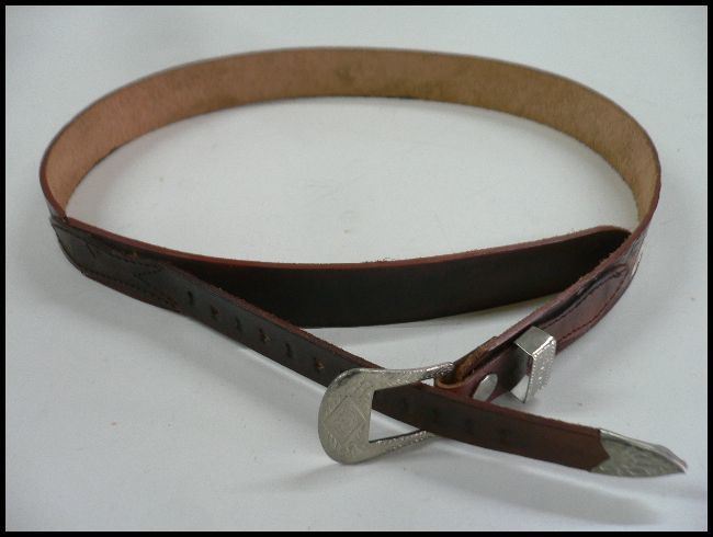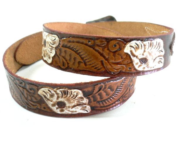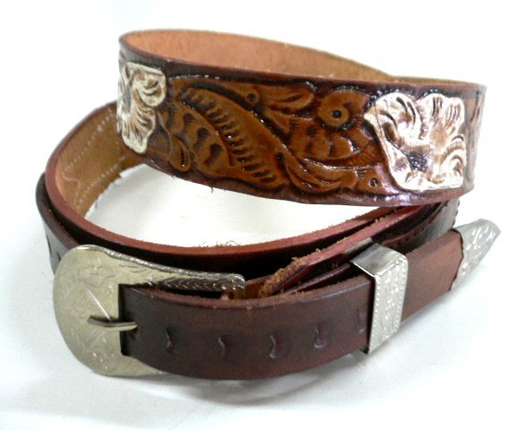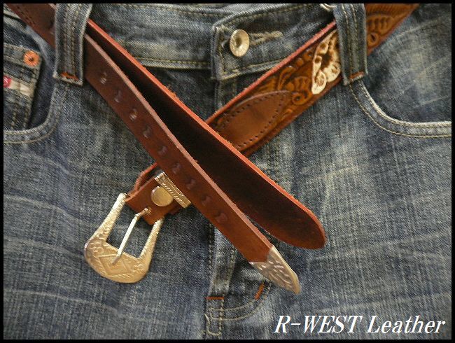 牛革カービング花柄彫りメタル剣先付きレザーベルト/革製品ALL20%OFF